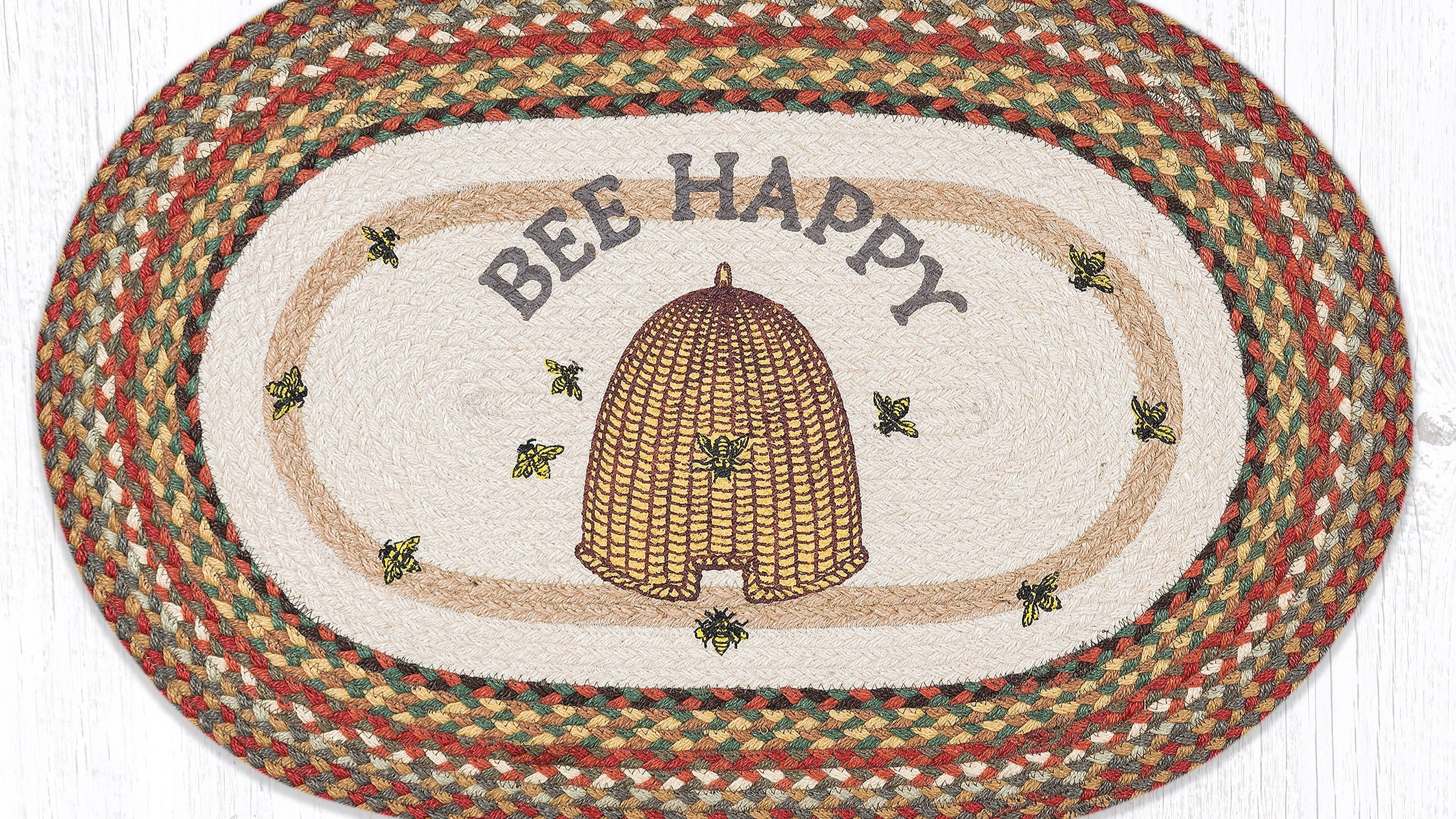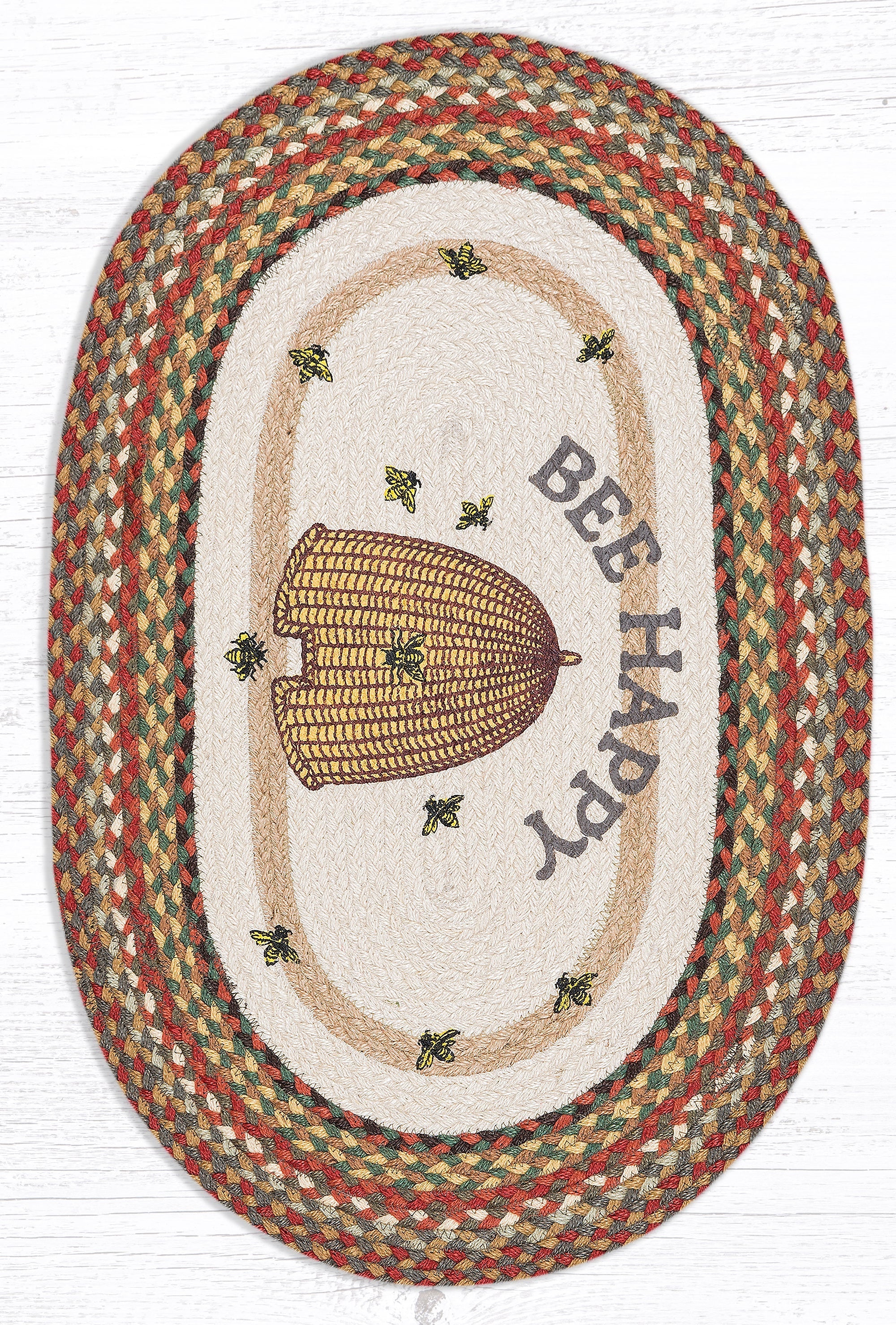 20x30 entryway runner,bee happy oval rug,cabin rustic rug,cheerful bee motif rug,Earth Rugs,eco-friendly entryway rug,farmhouse oval patch,hand-braided jute rug,hand-braided oval jute rug,oval jute runner,Placemat,primitive farmhouse rug,rustic country jute rug,rustic farmhouse décor rug,small hallway rug,small oval rug 20x30,Uber Living,Under $100