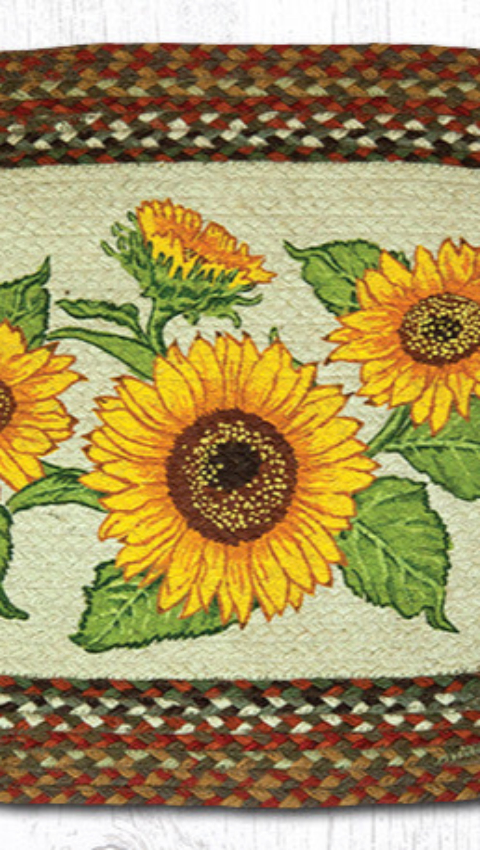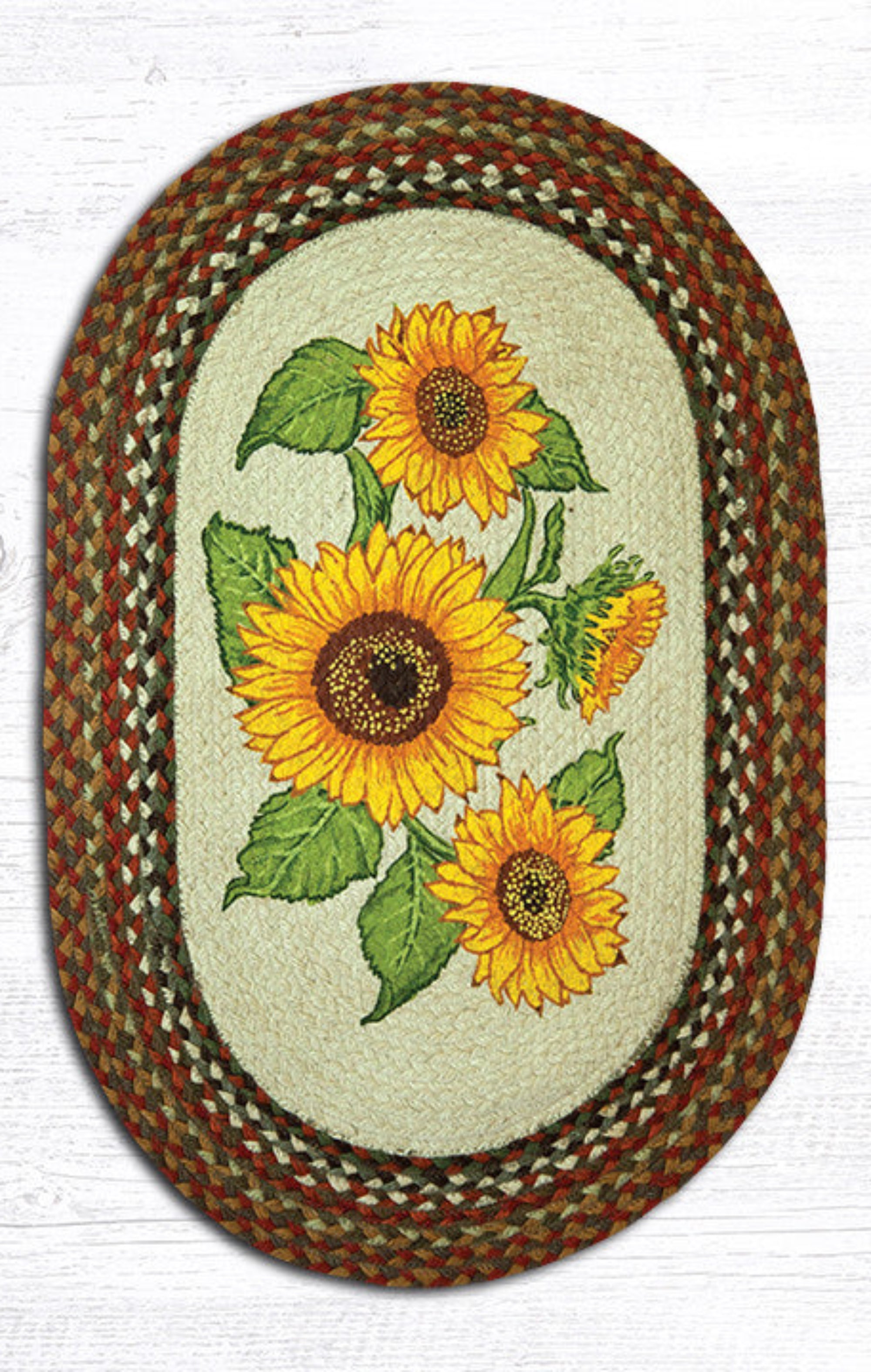 20x30 entryway runner,cabin rustic rug,cheerful sunflower motif rug,Earth Rugs,eco-friendly entryway rug,farmhouse oval patch,hand-braided jute rug,hand-braided oval jute rug,oval jute runner,Placemat,primitive farmhouse rug,rustic country jute rug,rustic farmhouse décor rug,small hallway rug,small oval rug 20x30,sunflowers oval rug,Uber Living,Under $100