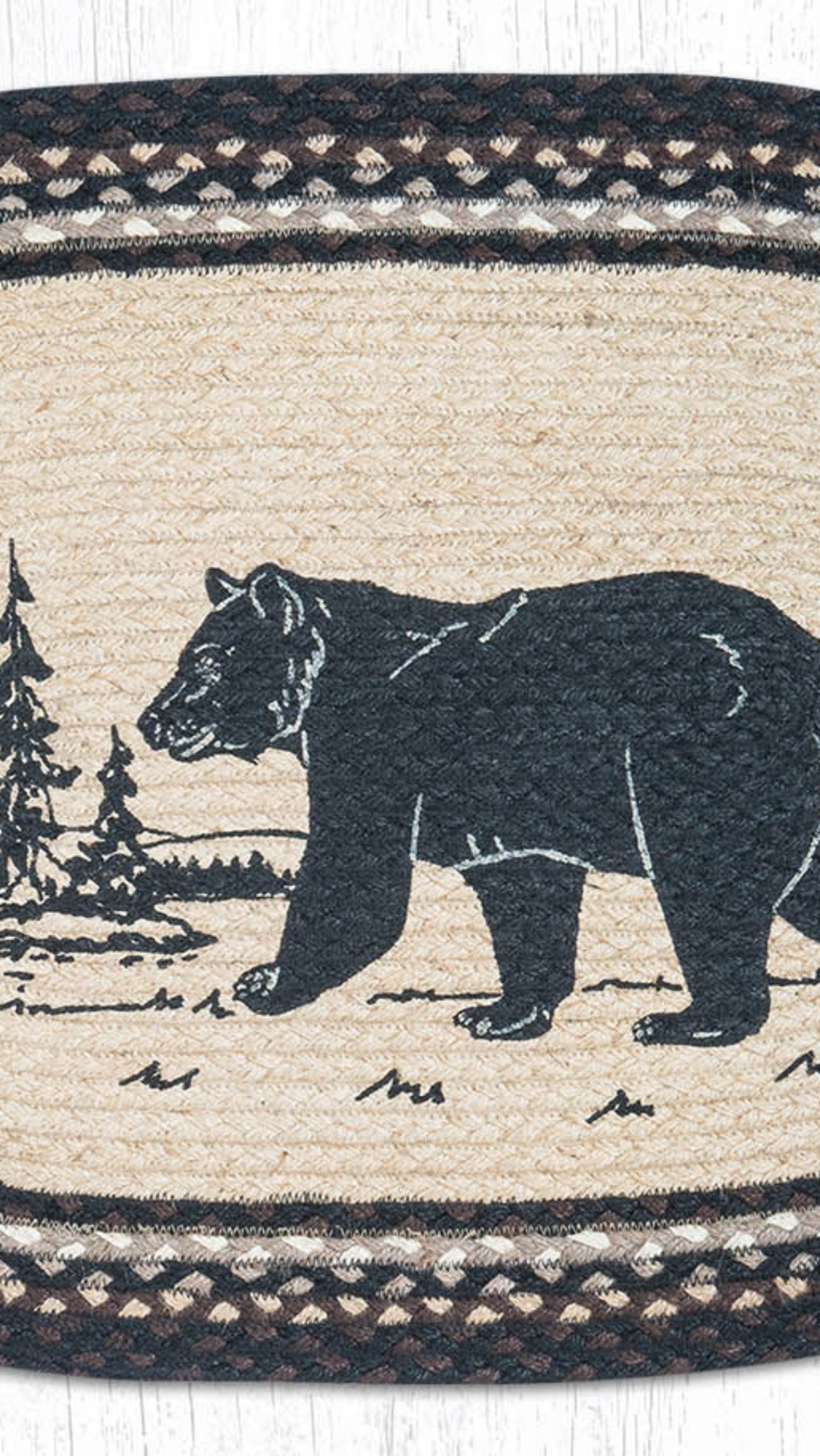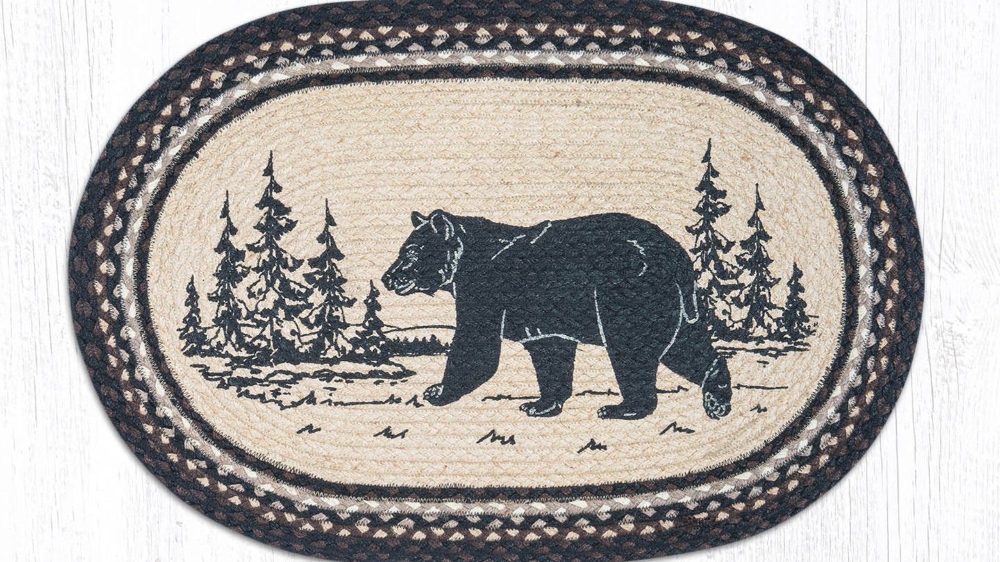 SKU - ER65-313BEBear Silhouette Oval Patch Tread 20"x30" Rustic Cabin Decor