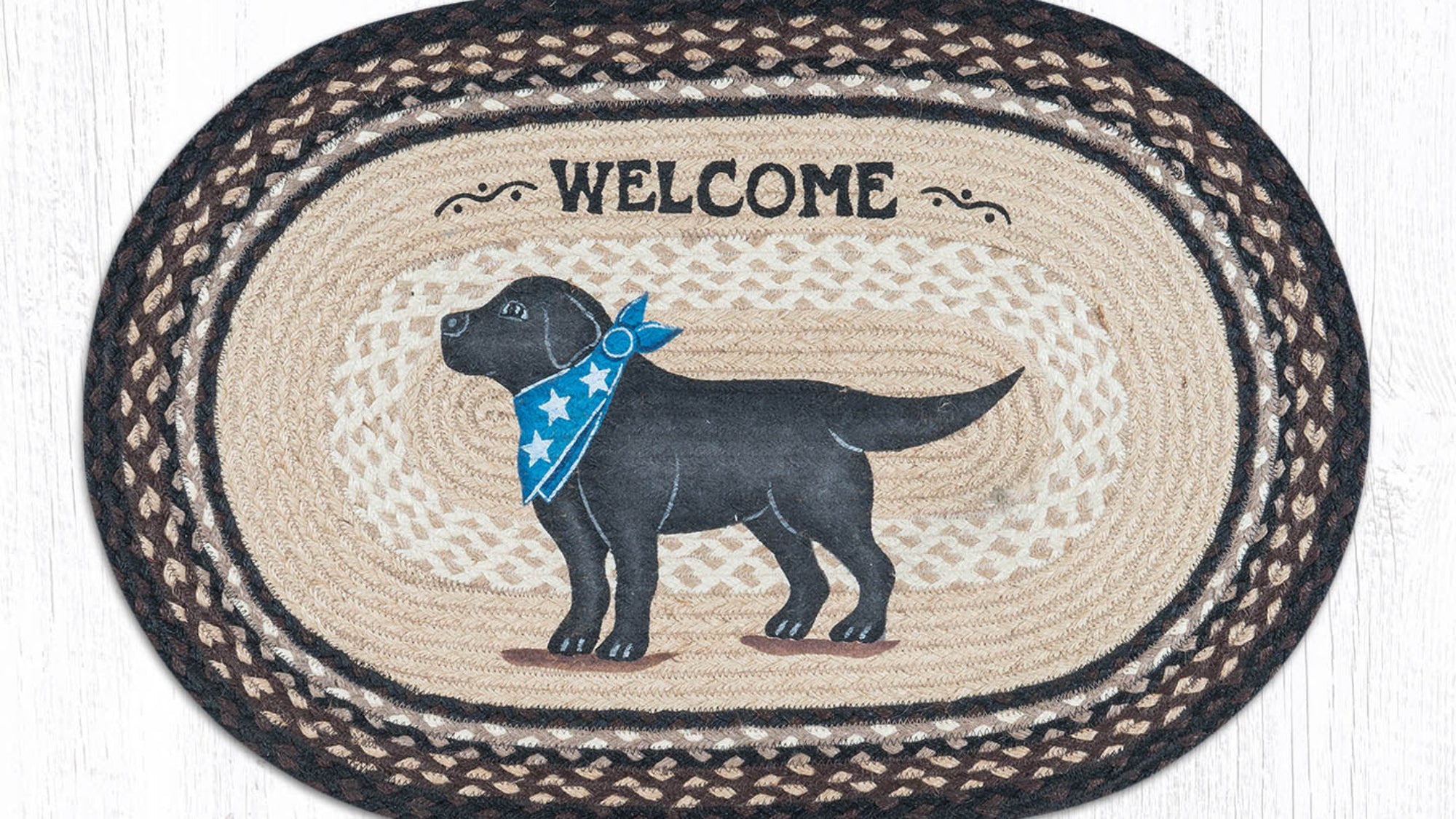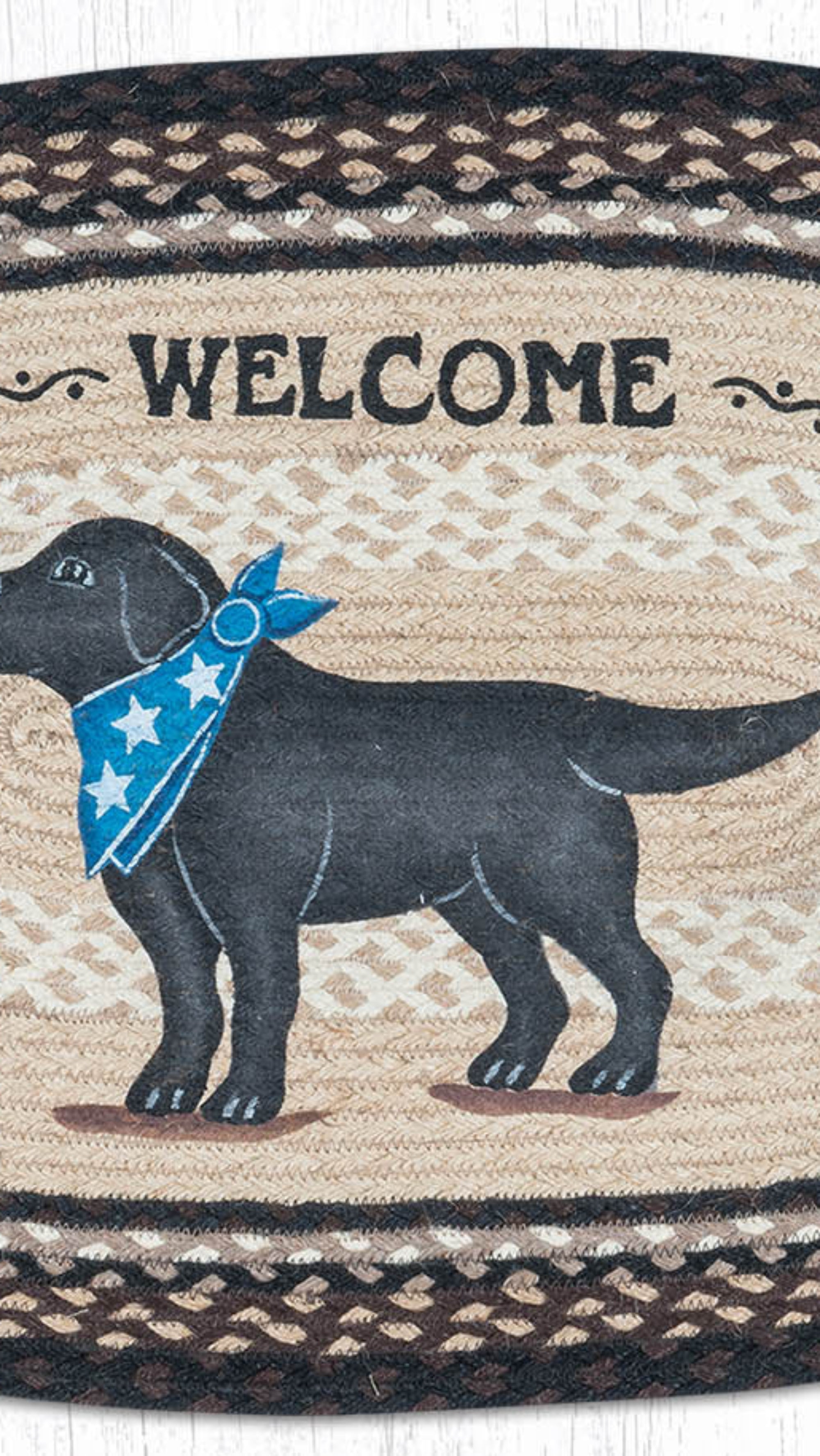 Black Lab rug,Cabin décor Black Lab,Earth Rugs,Earth Rugs Black Lab patch,Eco-friendly jute oval rug,Farmhouse dog oval rug,Hand-braided dog silhouette rug,Handcrafted dog silhouette rug,Lodge cabin décor rug,Natural jute dog rug,Oval Black Lab accent mat,Placemat,Primitive country dog rug,Rustic cabin dog rug,Uber Living,Under $100