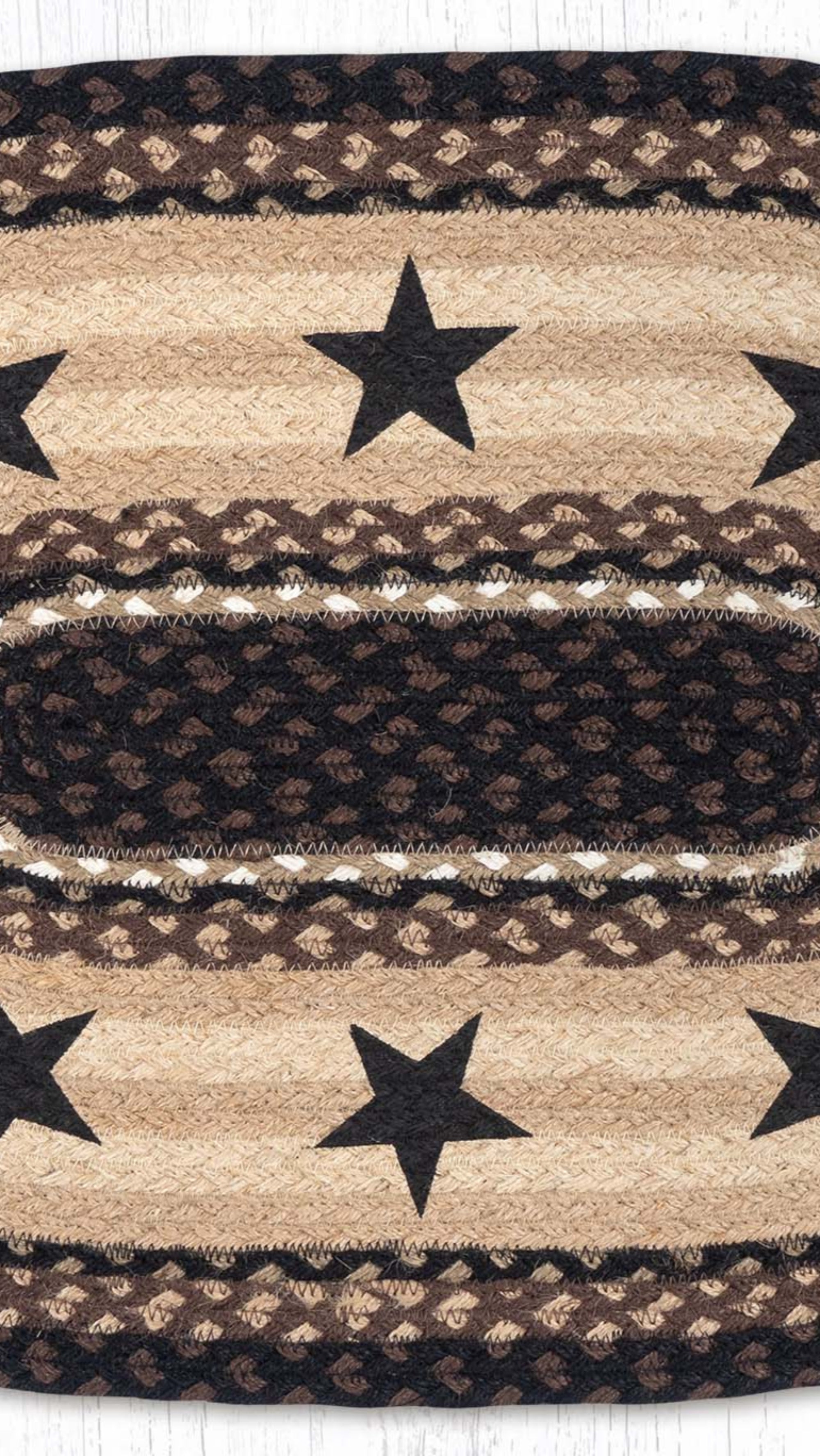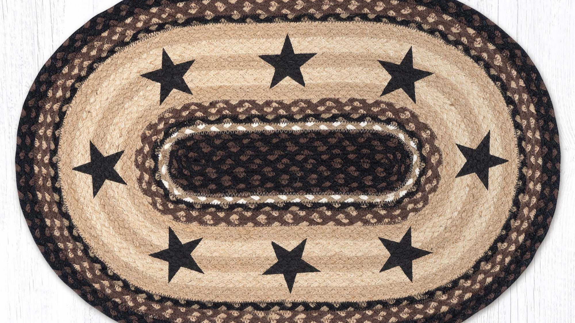 Black stars oval rug,Durable hand-braided accent rug,Earth Rugs,Earth Rugs black stars accent mat,Eco-friendly oval jute rug,Farmhouse rustic oval jute rug,Hand-braided jute oval rug,Lodge style black stars rug,Placemat,Primitive country oval patch,Rustic cabin oval patch rug,Rustic farmhouse floor mat,Uber Living,Under $100