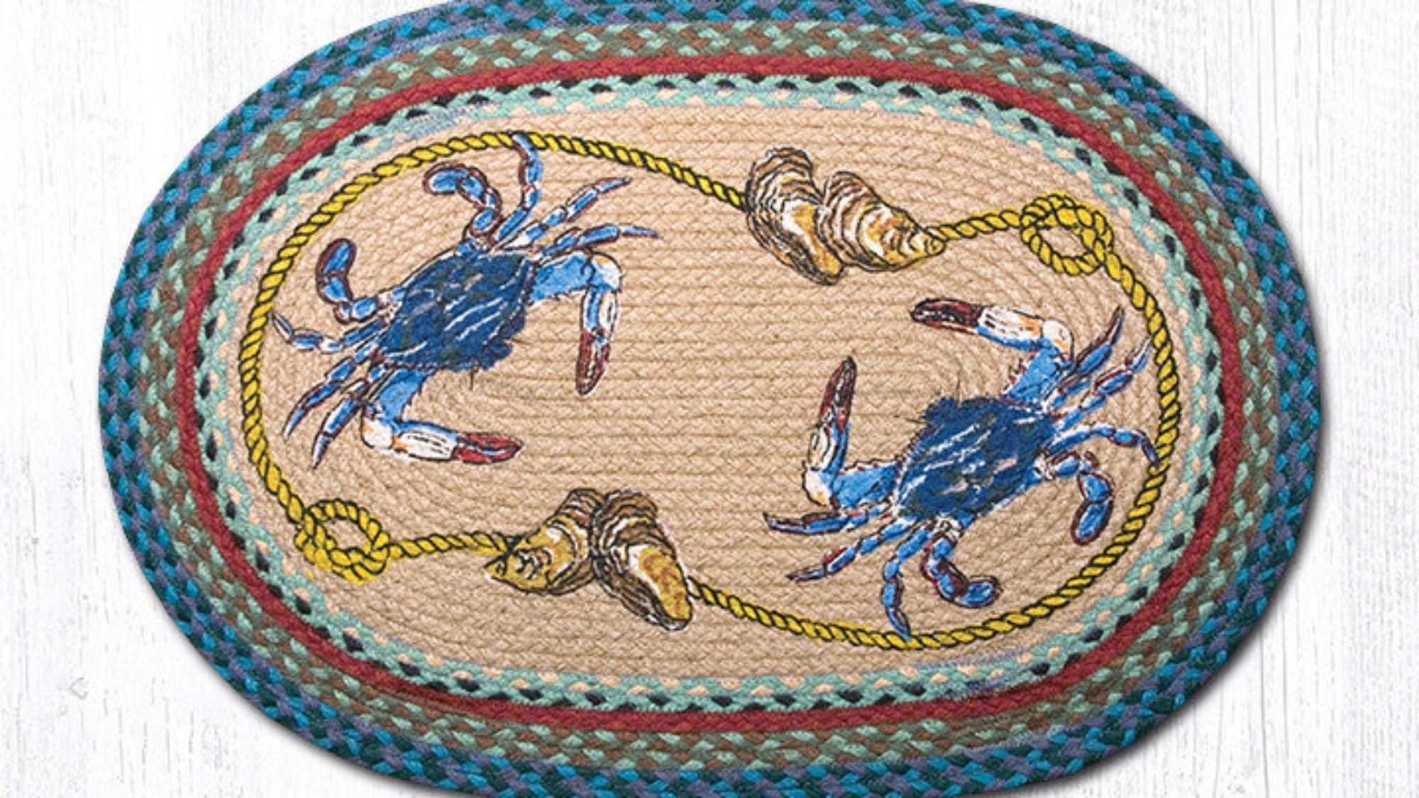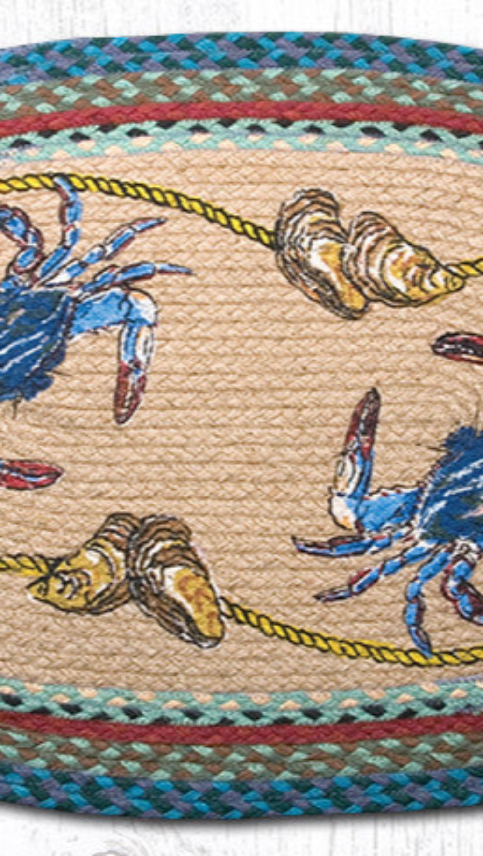 blue crab patch rug,coastal living room rug,coastal oval rug,Earth Rugs,Earth Rugs blue crab design,eco-friendly oval rug,entryway coastal rug,farmhouse coastal patch,farmhouse seaside patch,handcrafted nautical rug,natural jute oval rug,nautical braided rug,oval braided jute rug,oval coastal accent rug,Placemat,rustic coastal rug,seaside accent rug,Under $100