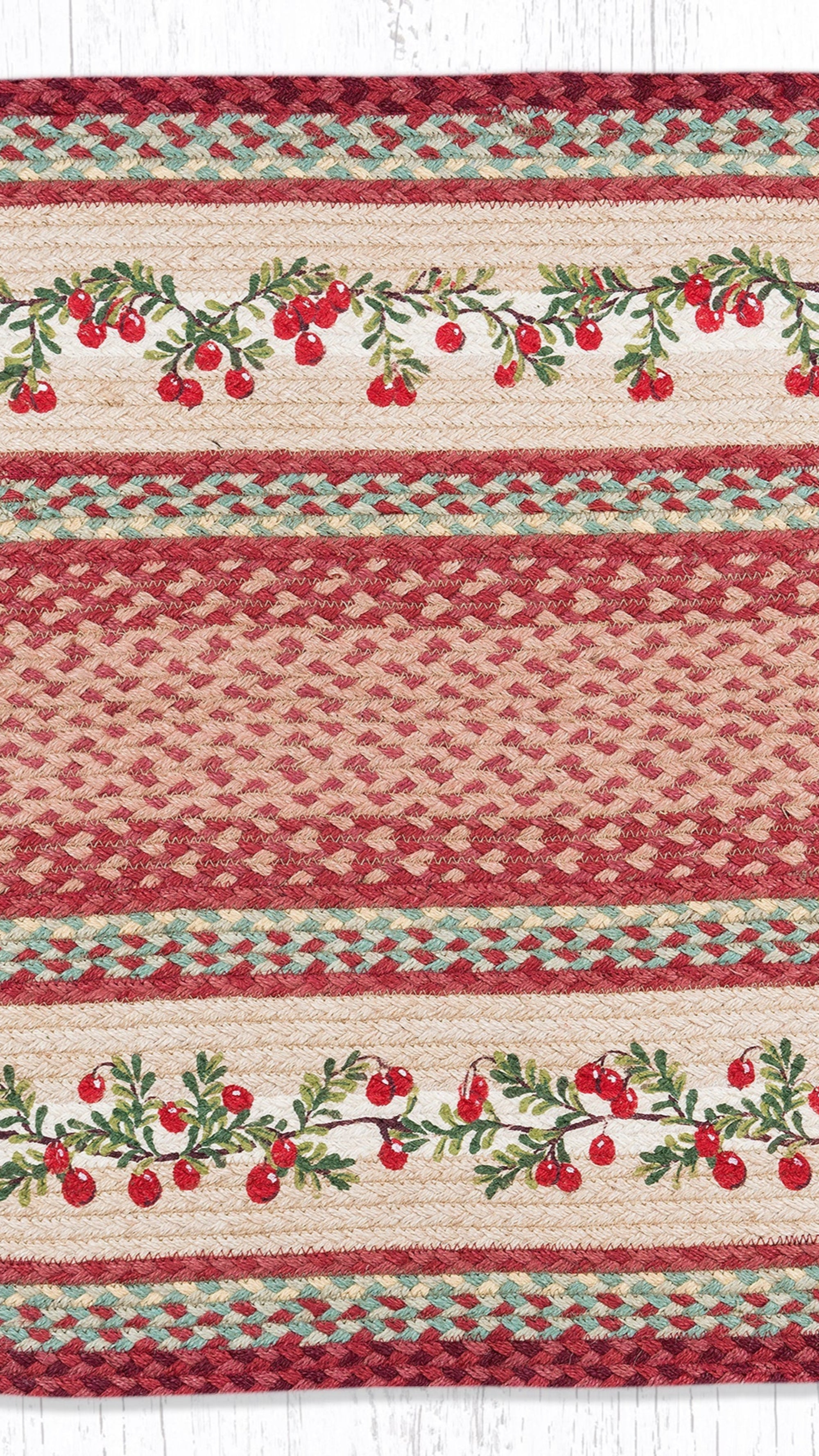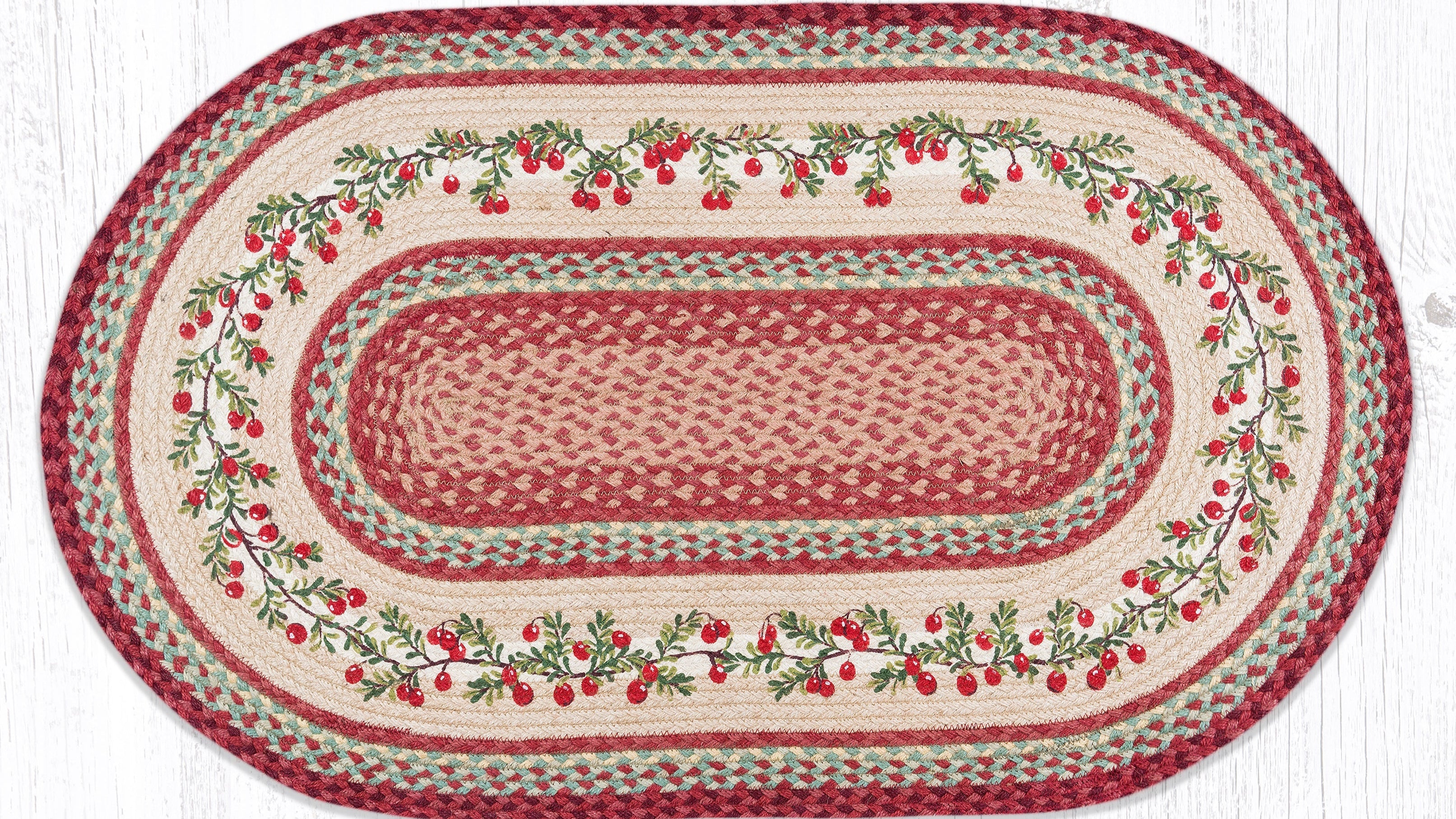 braided oval patch 27x45,country kitchen oval rug,cranberries oval patch rug,Earth Rugs,Earth Rugs cranberry design,eco-friendly jute oval rug,handcrafted farmhouse rug,holiday farmhouse rug,Placemat,rustic cabin cranberry rug,rustic entryway oval rug,rustic farmhouse braided rug,seasonal cranberry rug,Uber Living,Under $100