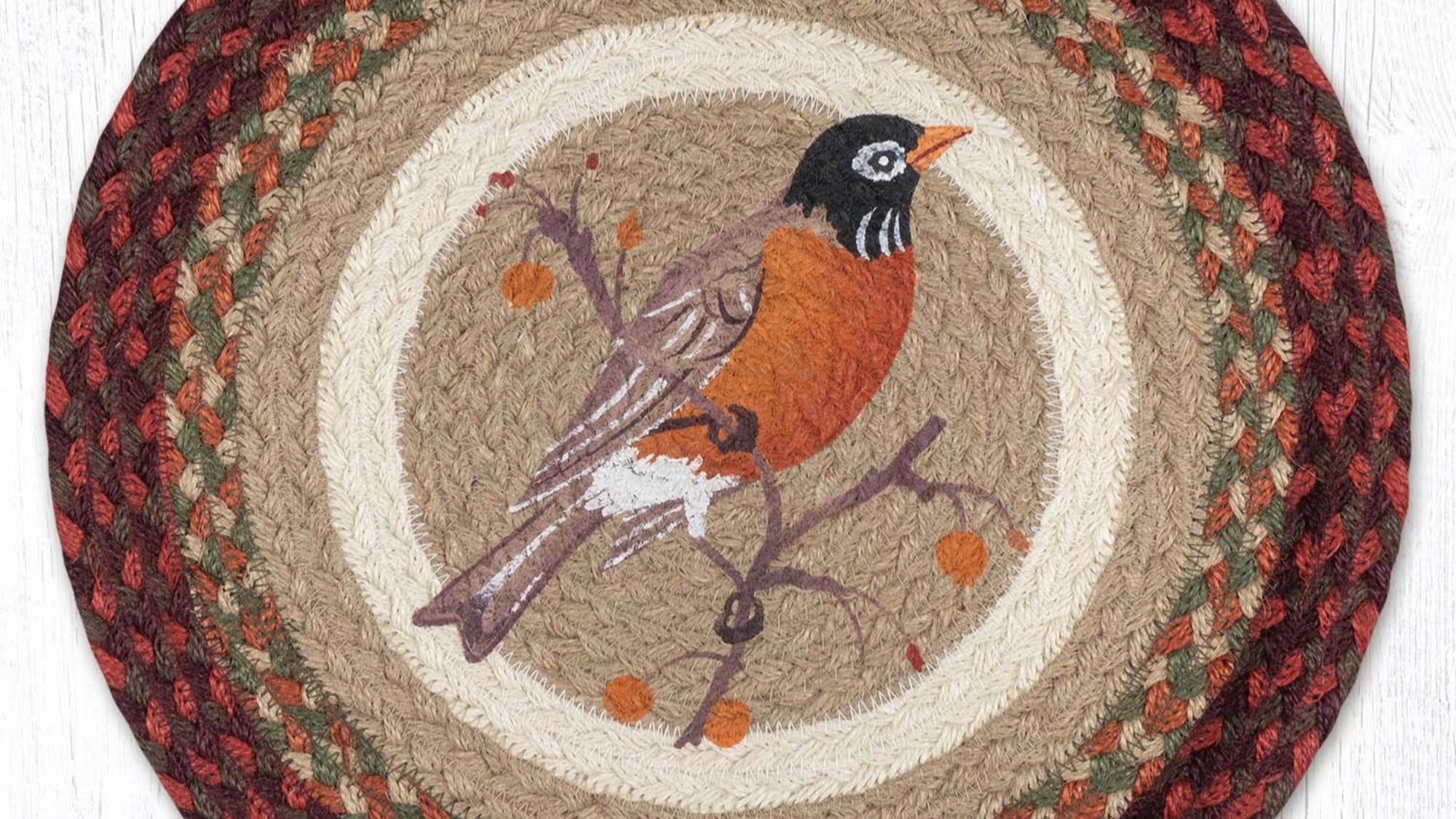 Earth Rugs Robin Print Round Placemat – Rustic Cabin Style Dining 15”