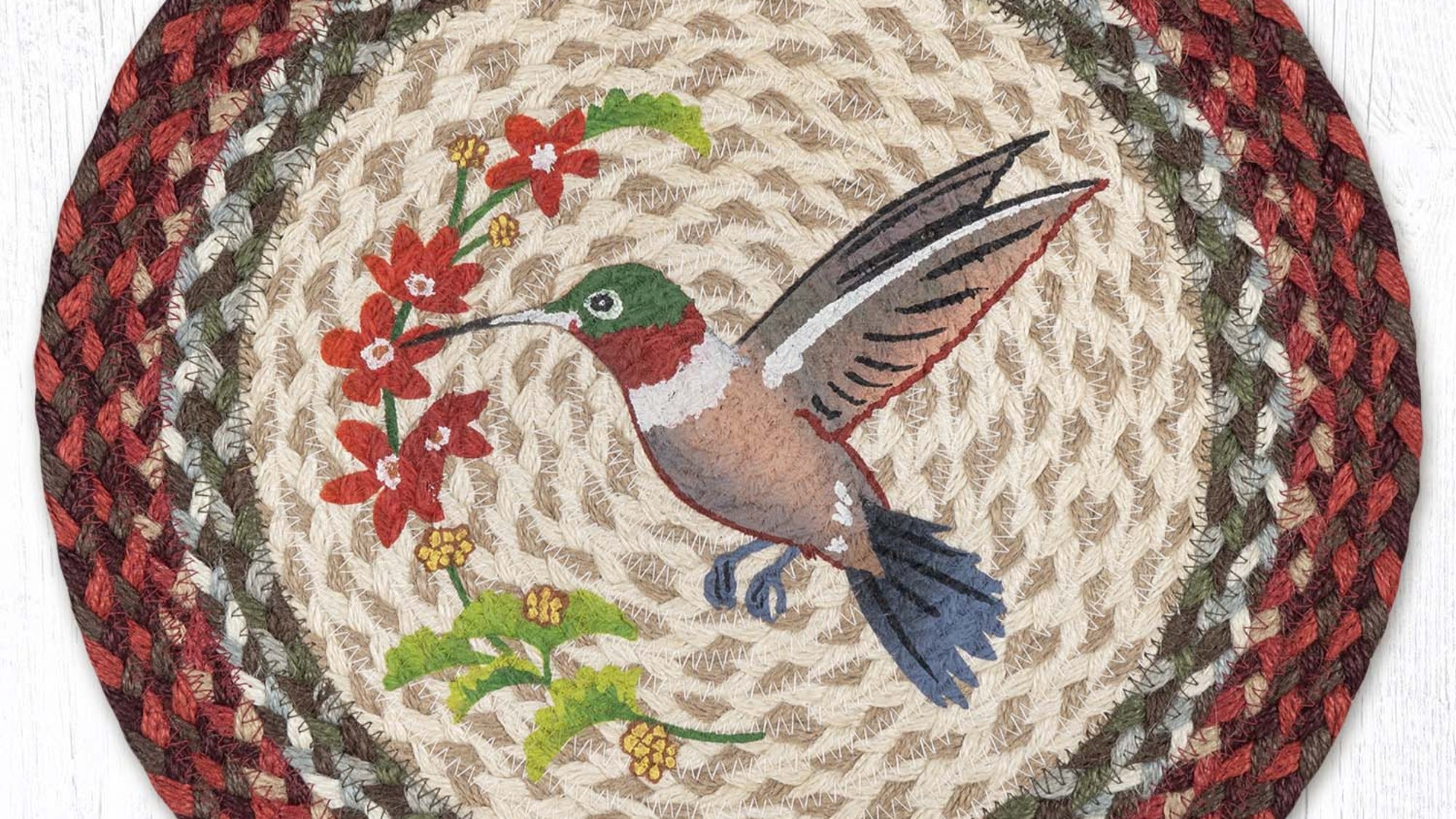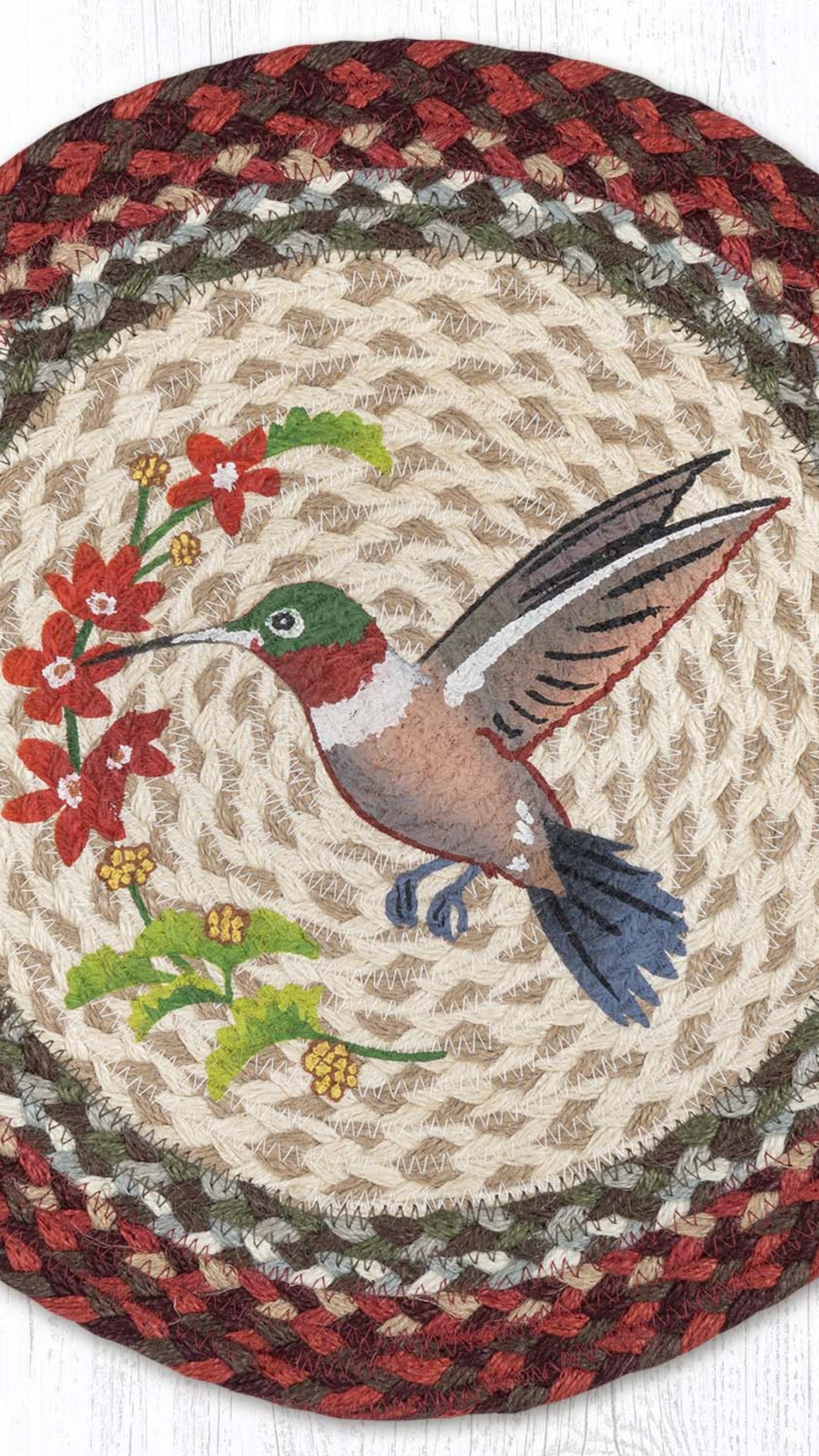 Earth Rugs Round Hummingbird Wildlife Placemat – Farmhouse Dining Accent 15"x15"