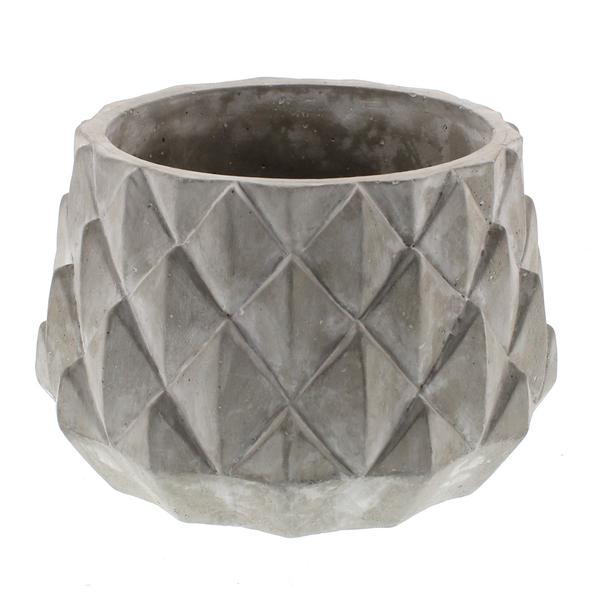 SKU - BZBM229697Round Cement Planter with Textured Diamond Design Available at Uber Bazaar