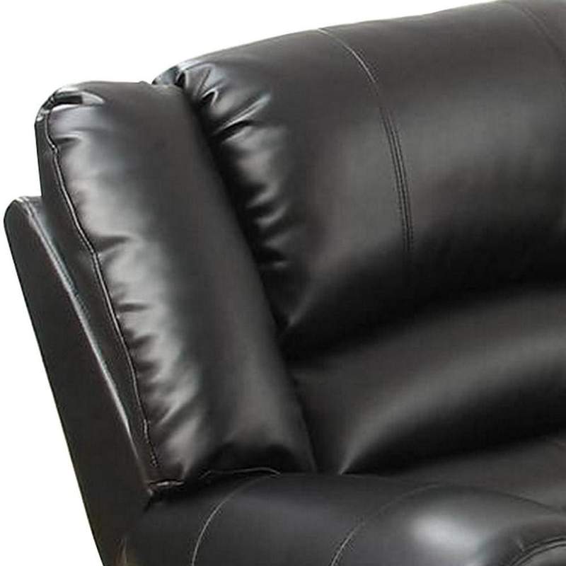 Benzara Nailhead Trim Leatherette Power Recliner, Black