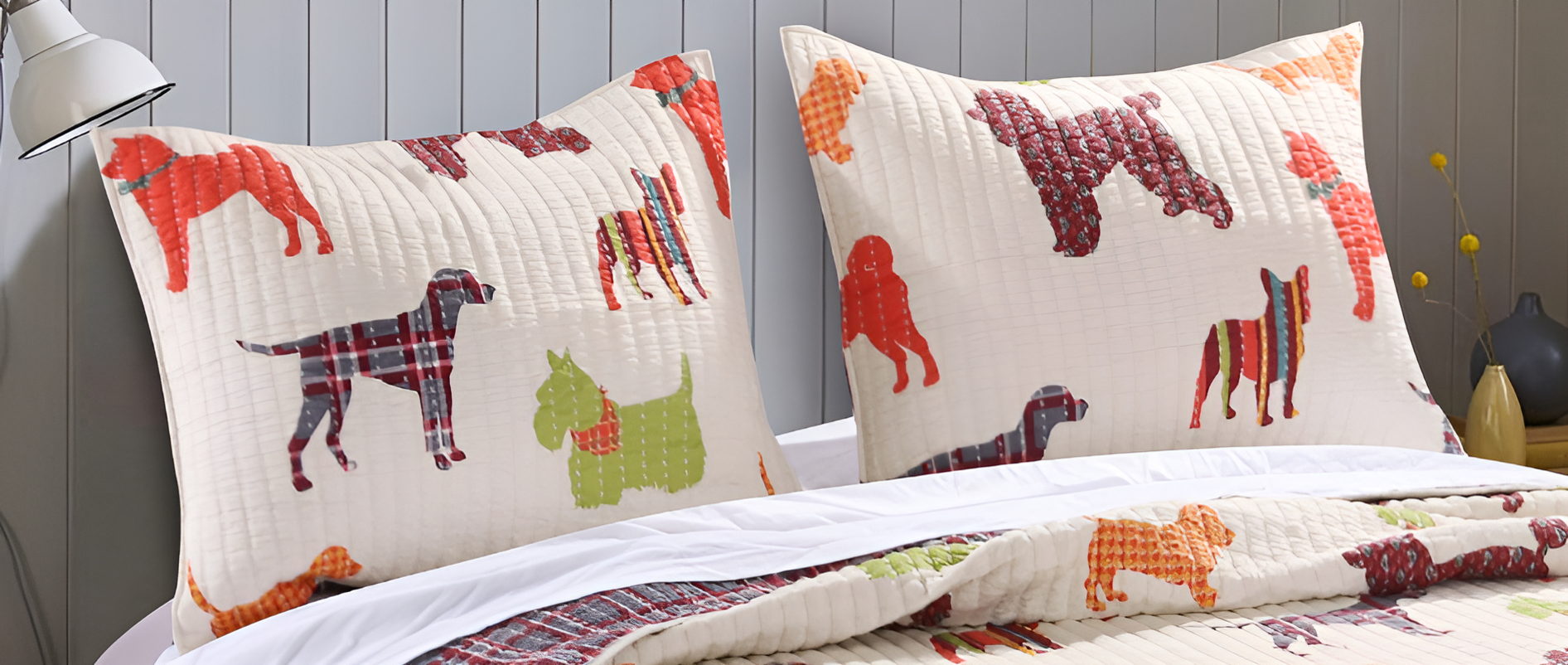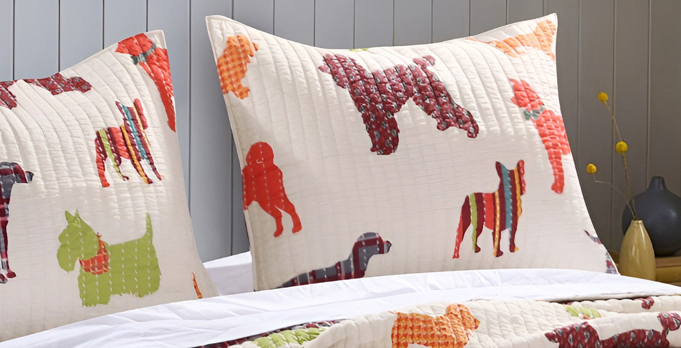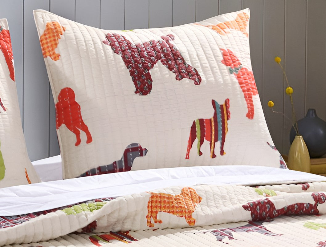 Greenland Home Fashions Baxter Multi Pillow Dog Print Quilted Cotton Reversible Sham