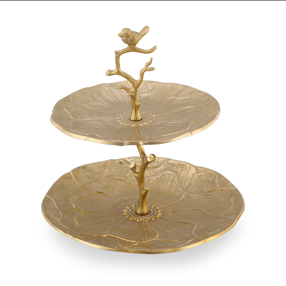 SPI Home Bird and Branch Serving Tray – 16" Round Cast Metal Tray with Nature Motif for Decorative or Functional Use