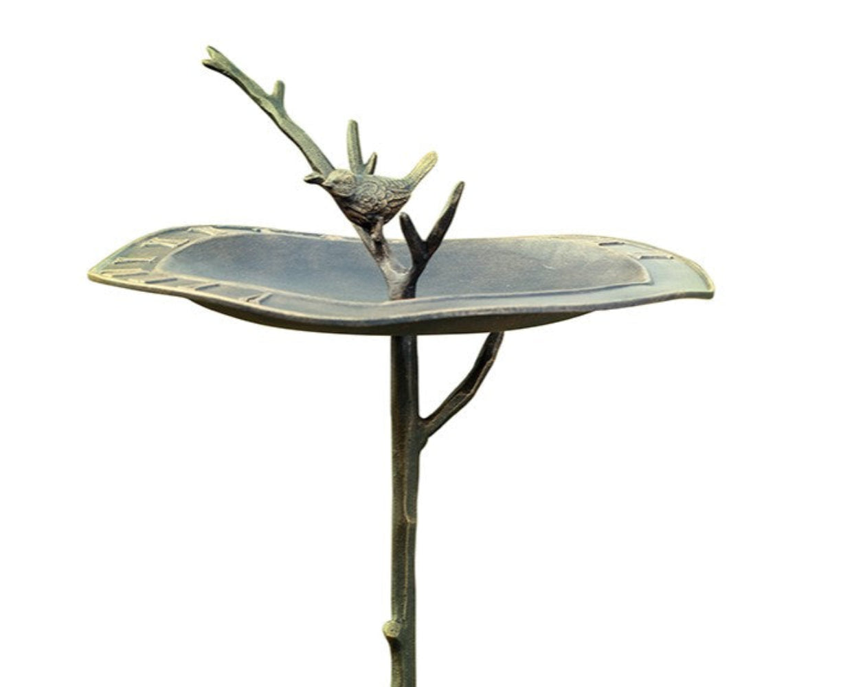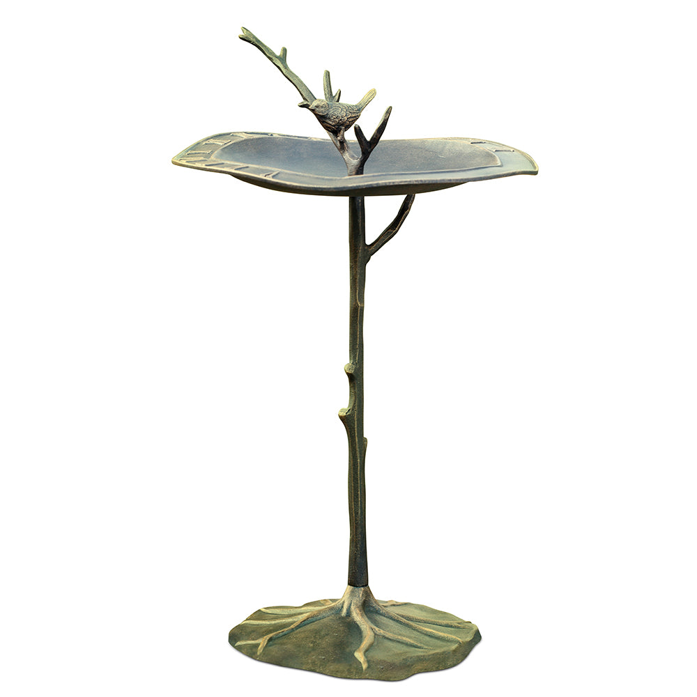 SPI Home Bird on Branch Sundial Birdbath – Cast Metal Garden Accent for Outdoor Decor, Timekeeping, and Bird-Friendly Landscaping