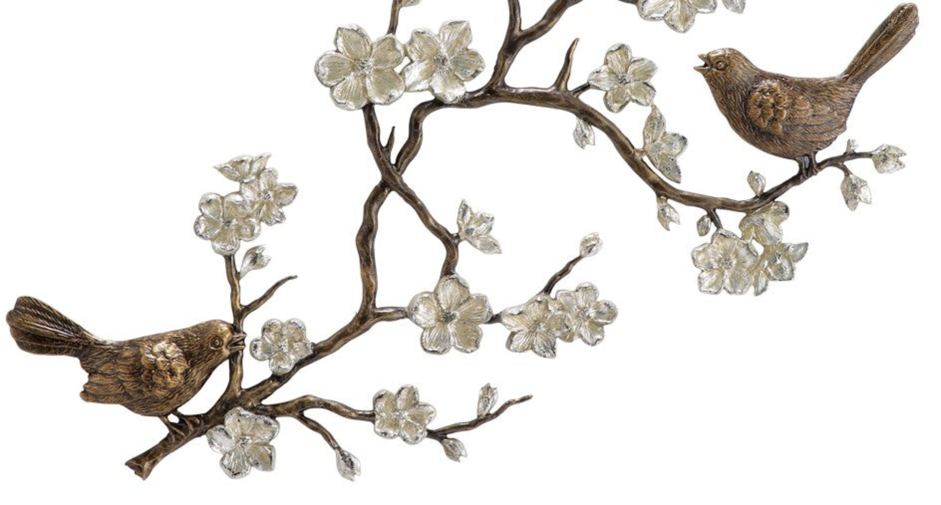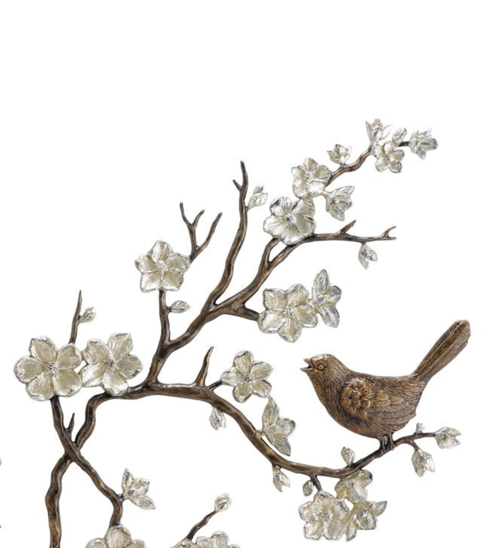 SPI Home Birds & Cherry Blossom Wall Plaque – Cast Metal Botanical Wall Art for Living Room, Entryway, or Patio Decor