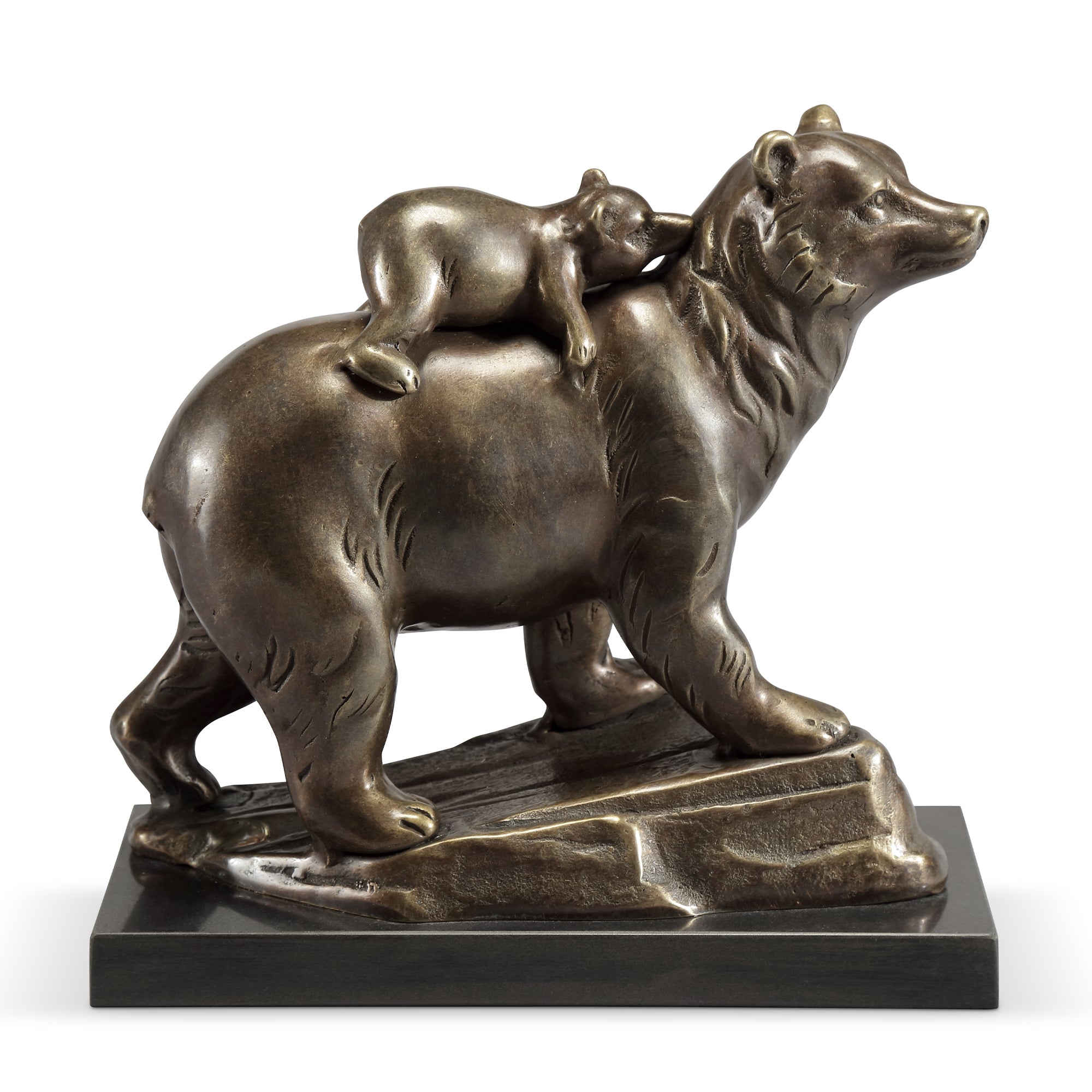SKU - SPI80392Brass Naptime Bear and Cub Figurine – 11" Wildlife Sculpture for Rustic or Woodland Decor