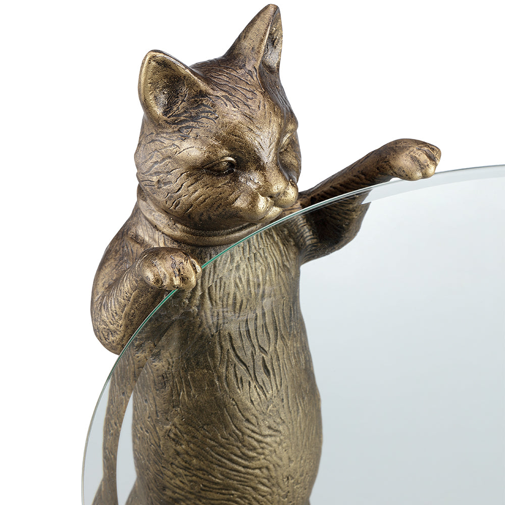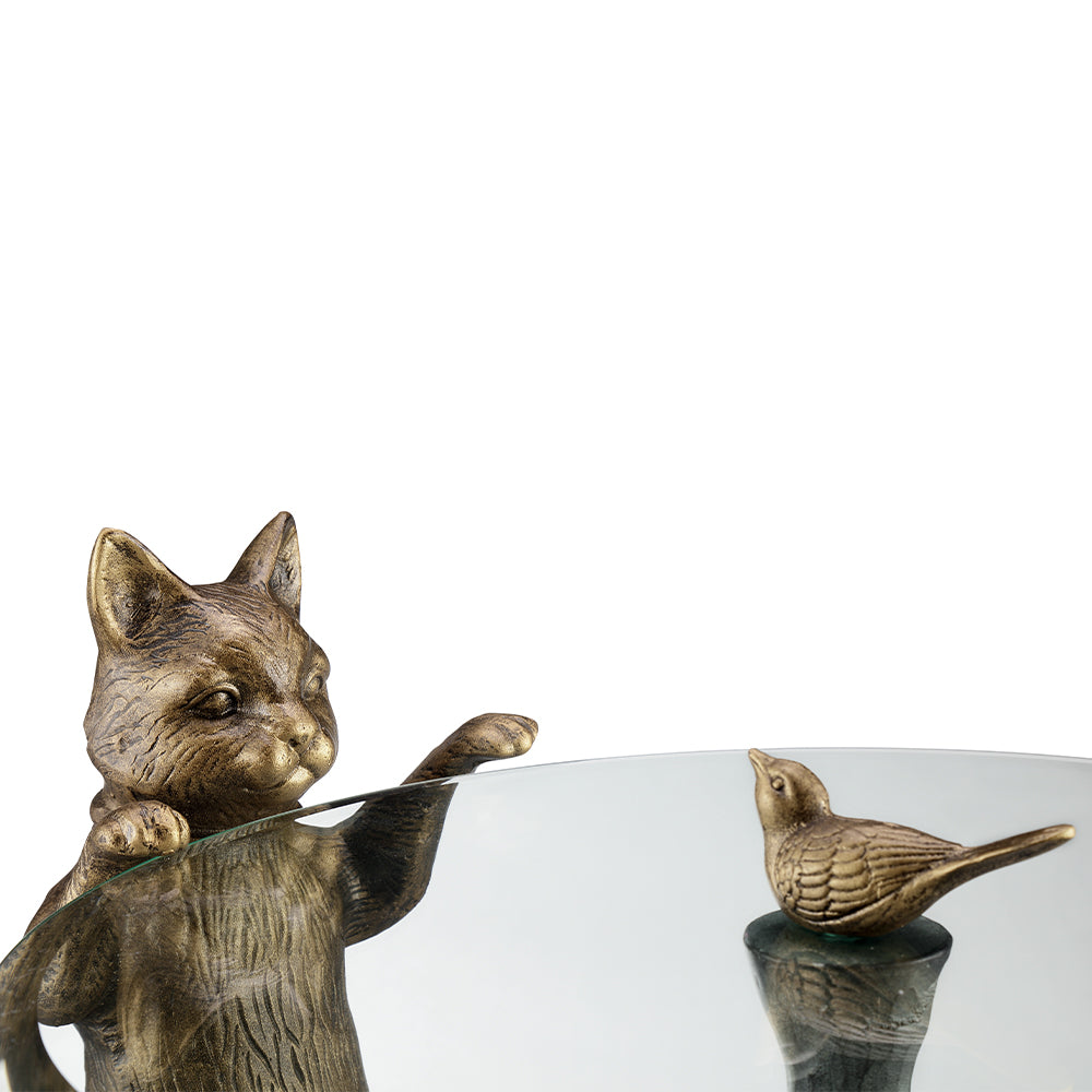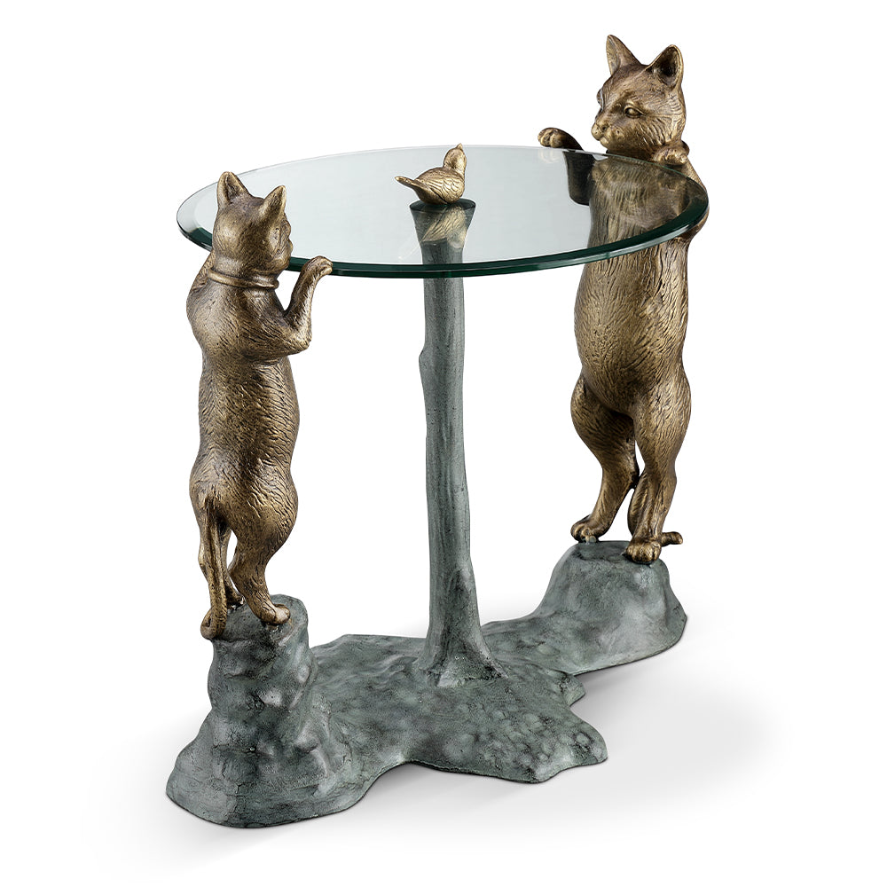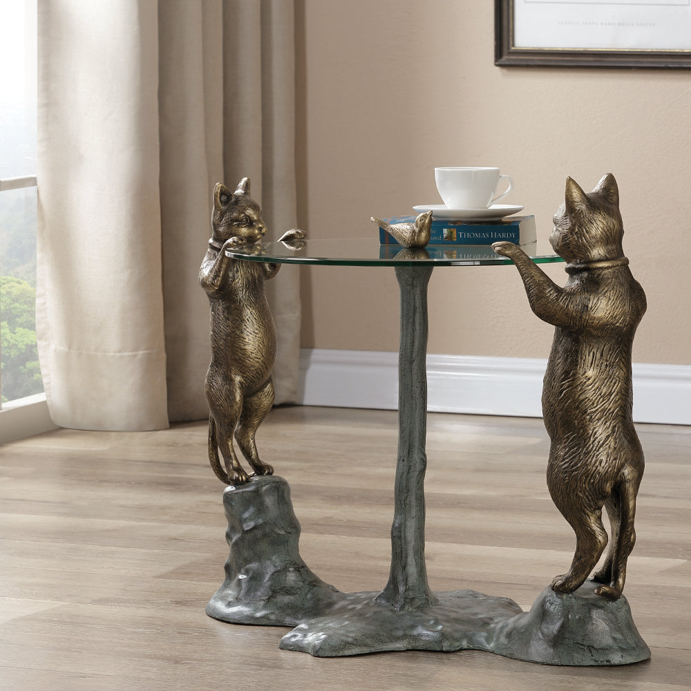 SPI Home Curious Cats End Table – Aluminum Sculptural Side Table with Glass Top, Whimsical Feline Design for Cat Lovers