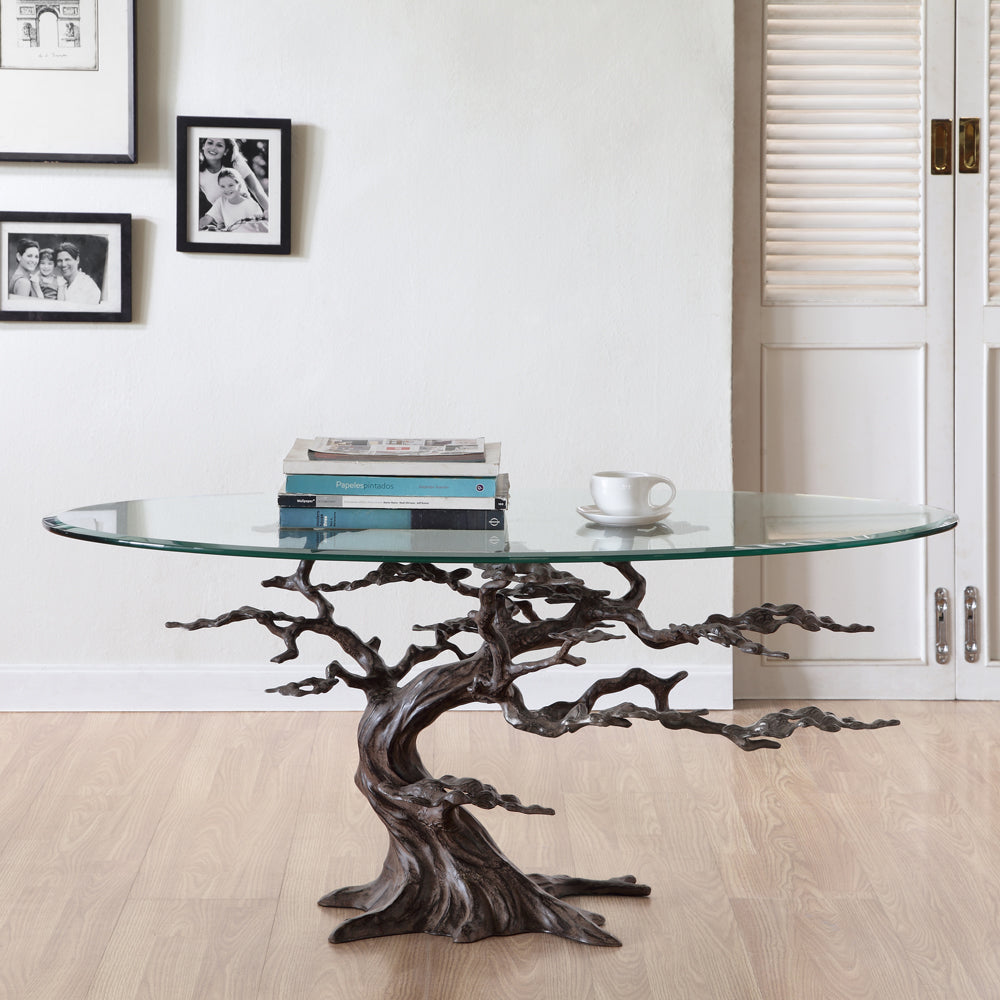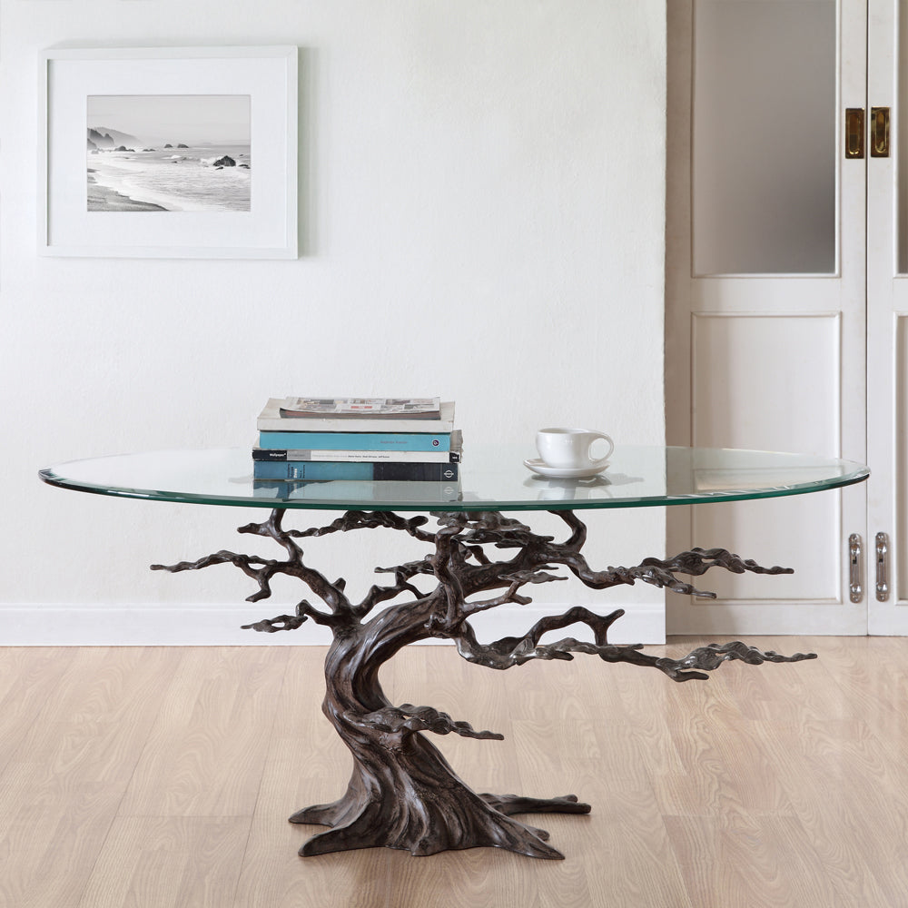 Bring the timeless beauty of nature indoors with the Cypress Tree Coffee Table. Featuring a sculptural base inspired by the flowing form of a cypress tree and topped with clear tempered glass, this elegant piece adds organic artistry to any living space.