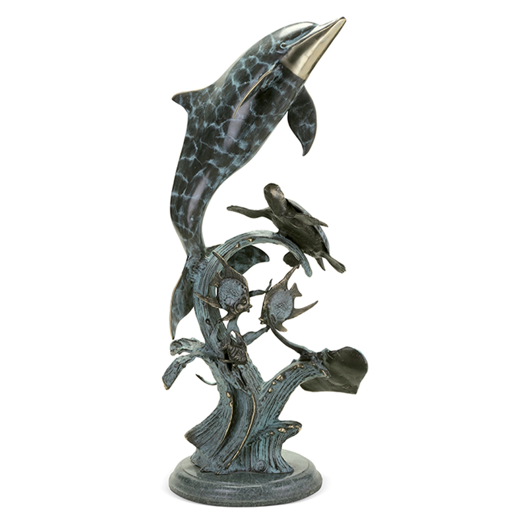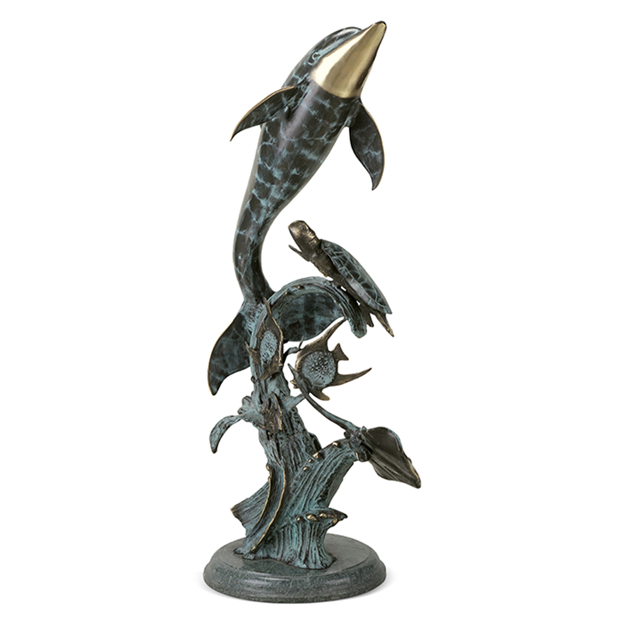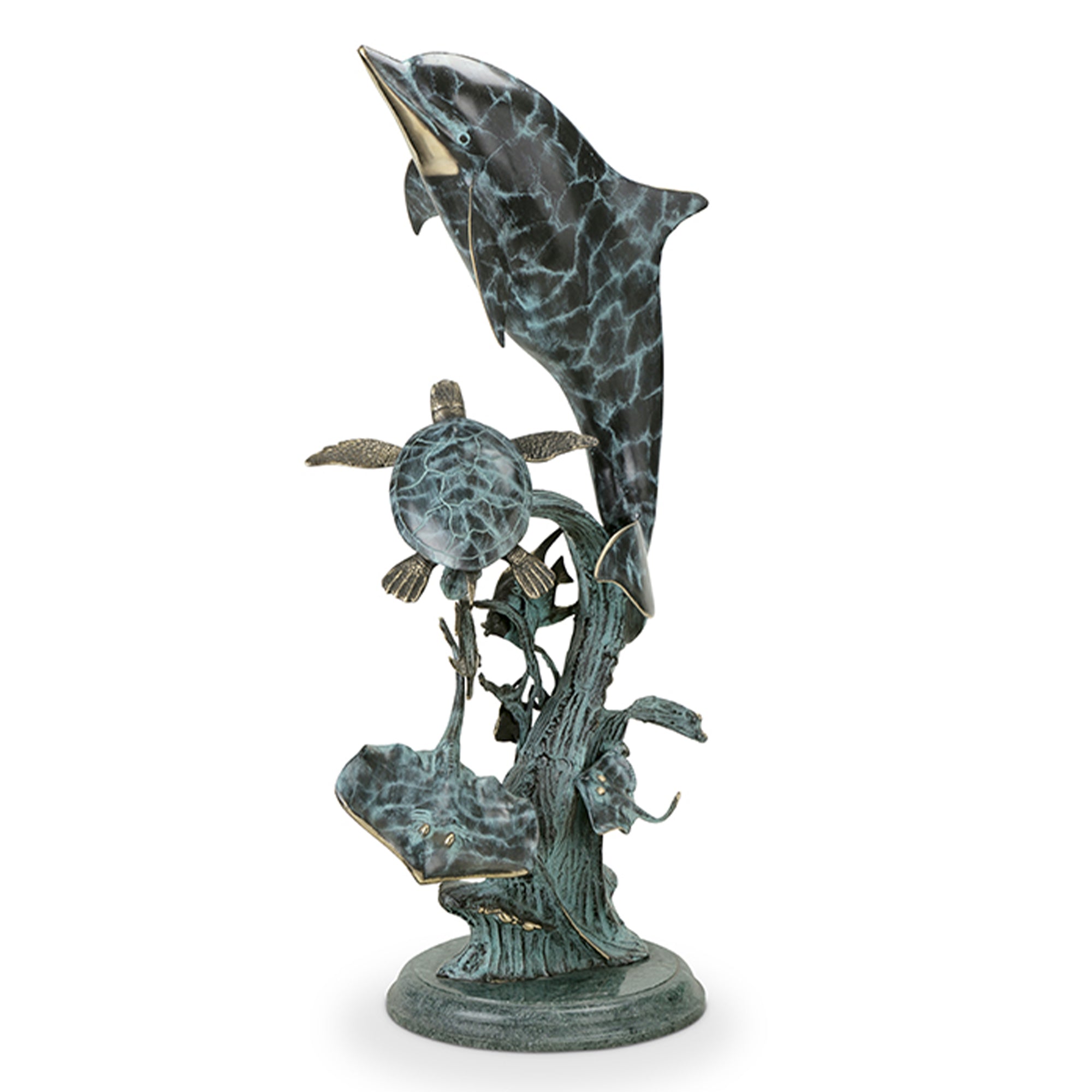 SPI Home Dolphin Seaworld Brass Sculpture – Ocean-Inspired Coastal Accent, 29" Tall