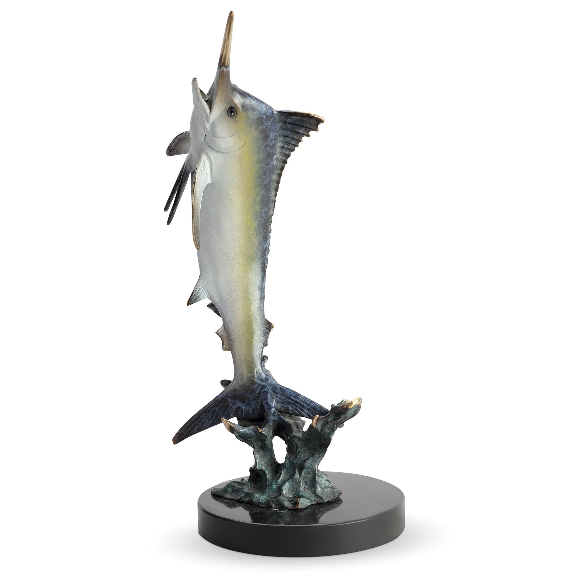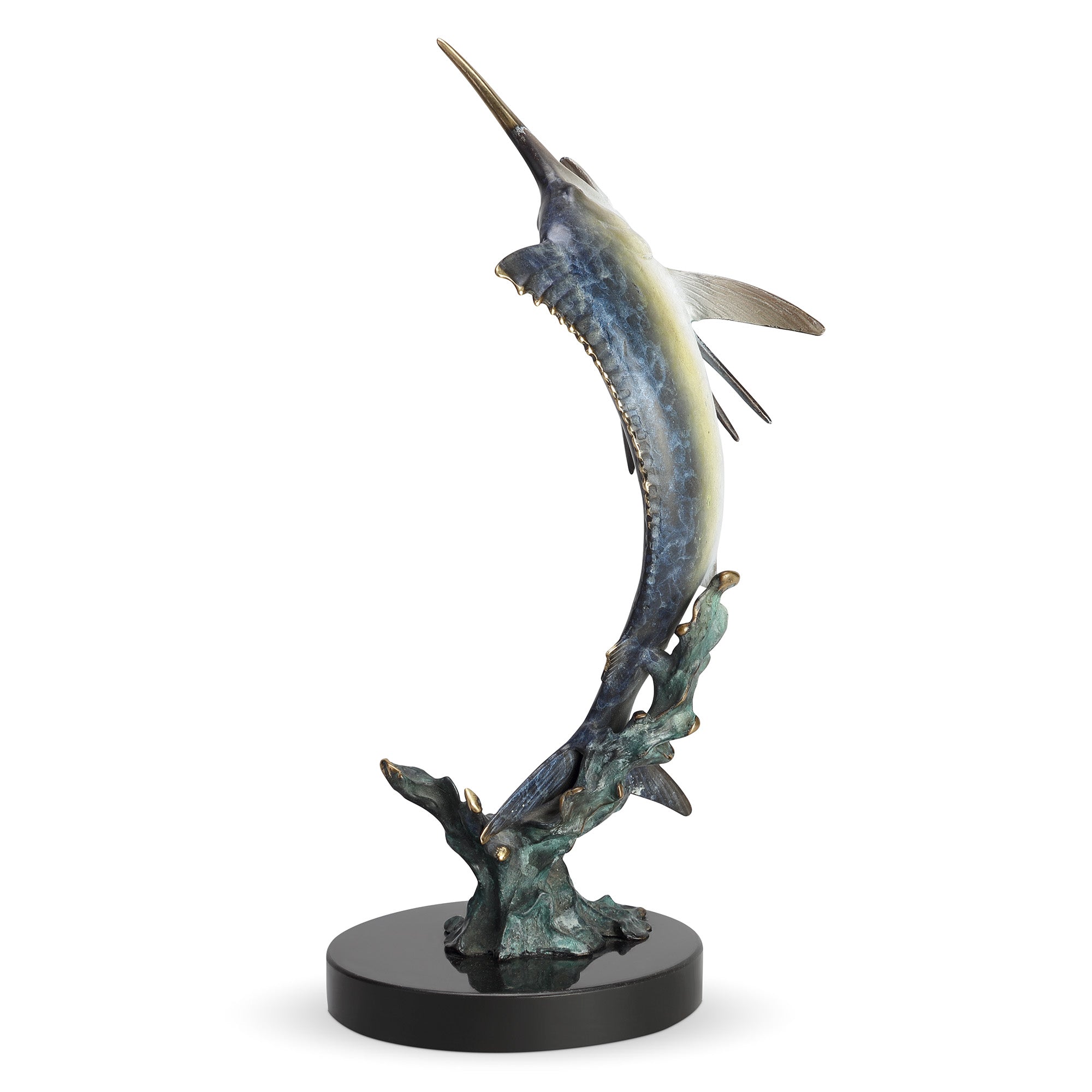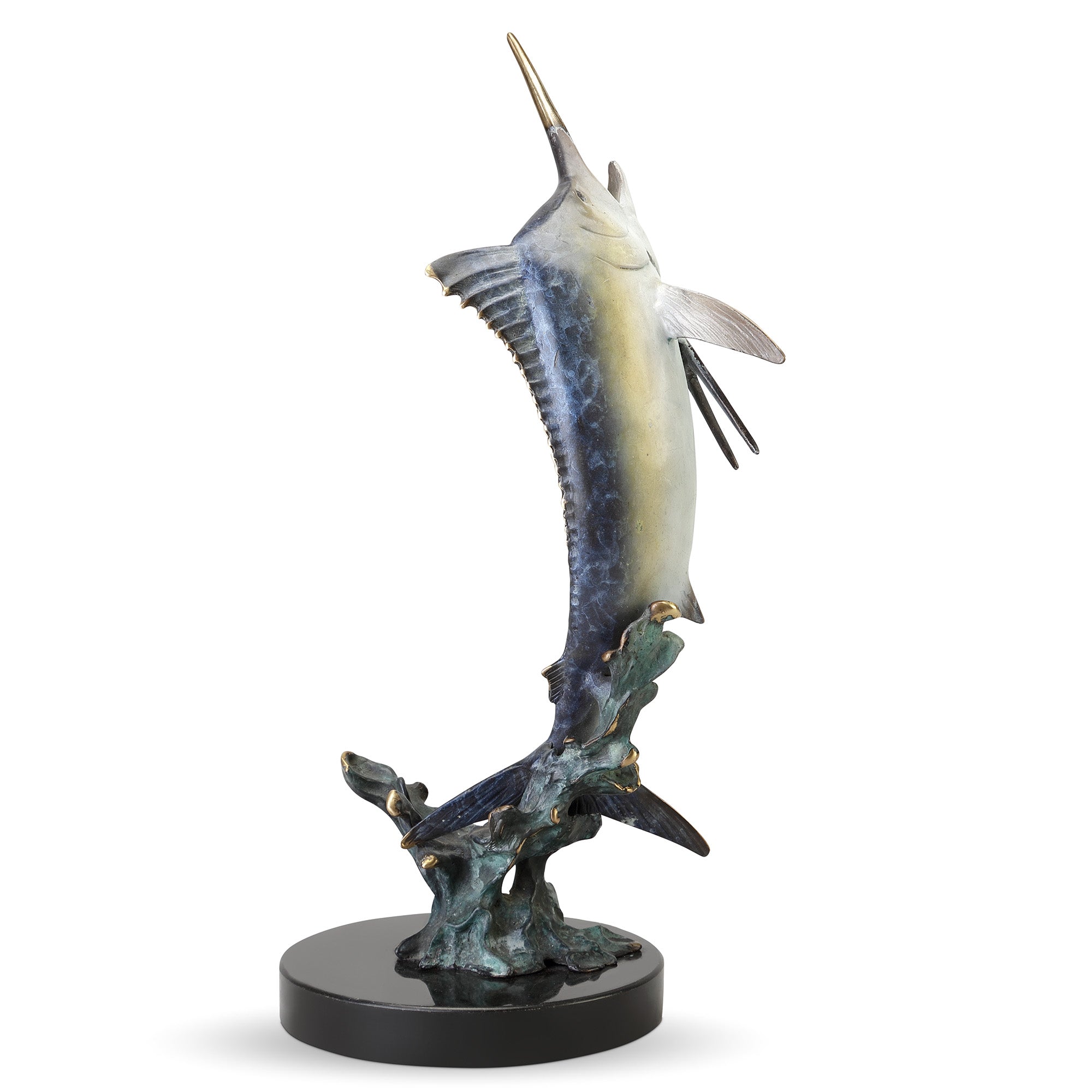 SPI Home Excited Blue Marlin Sculpture – 12" Solid Brass Ocean-Inspired Fish Figurine for Coastal Shelf or Table Display