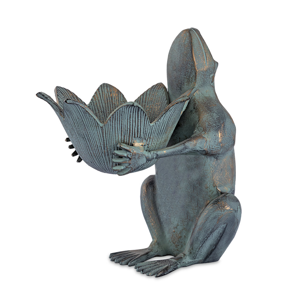 SKU - SPI41117Frog Royalty with Crown Birdfeeder – Cast Aluminum Garden Accent with Decorative Charm, 13" Height
