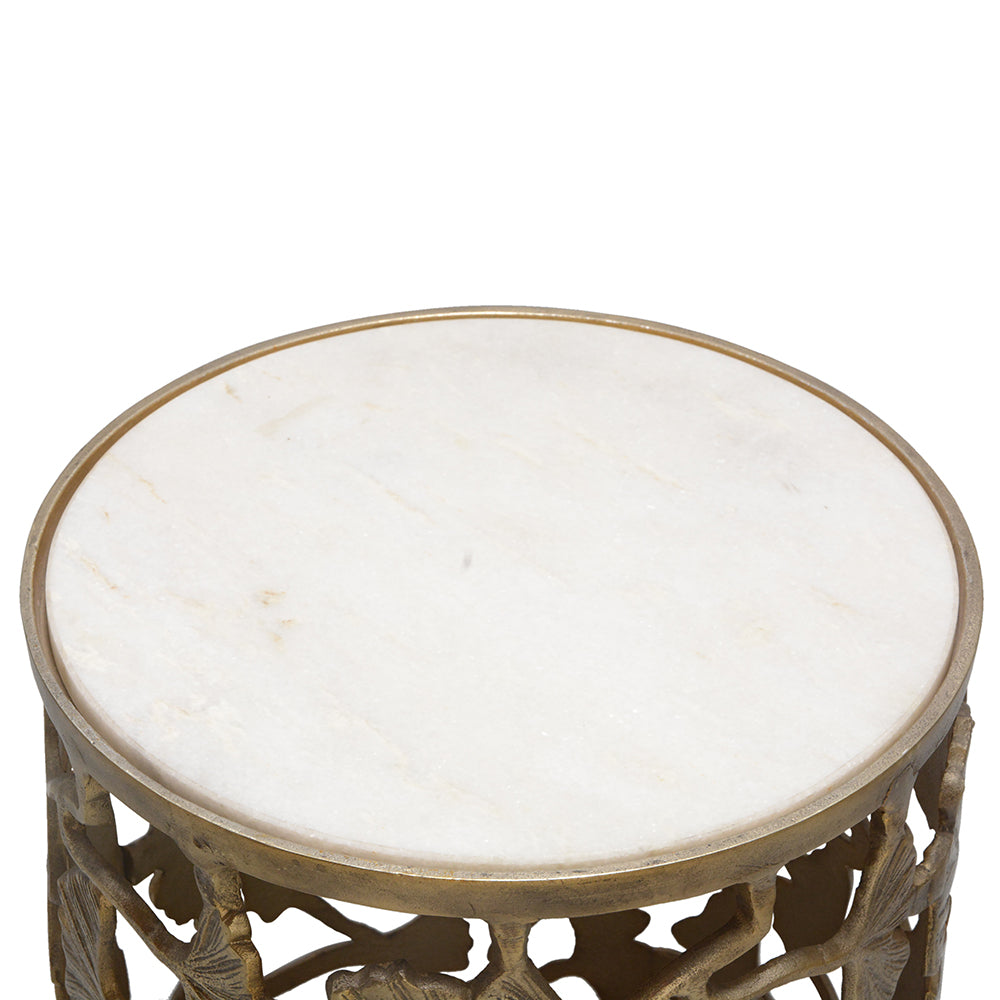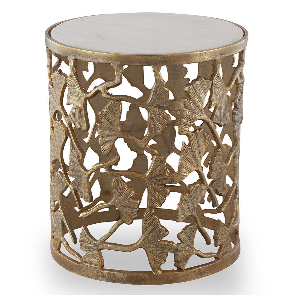 SKU - SPI41059Gingko Leaf Aluminum Stool – Botanical Design Accent Table for Garden or Indoor Spaces, 16" Height