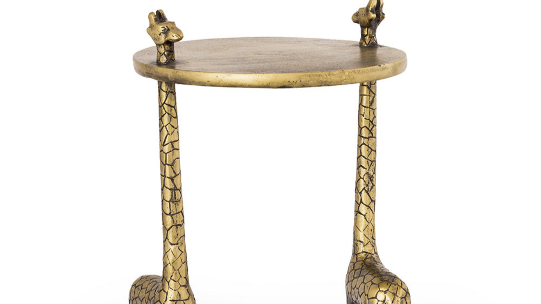Bring the spirit of the savanna into your living space with the SPI Home Giraffe Pair End Table, a functional yet artistic piece perfect for eclectic or nature-themed interiors. Crafted from durable metal, this 22-inch-high accent table features two intricately sculpted giraffes forming the base, supporting a circular tabletop that measures 14.5 inches in both width and depth. Weighing 11.25 lbs, it offers both stability and portability. With its hand-finished detailing and rich bronze tones, the table makes a striking conversation piece in living rooms, sunrooms, or covered patios. It's ideal for displaying books, plants, or drinks, all while adding a whimsical touch of wildlife elegance to your décor.