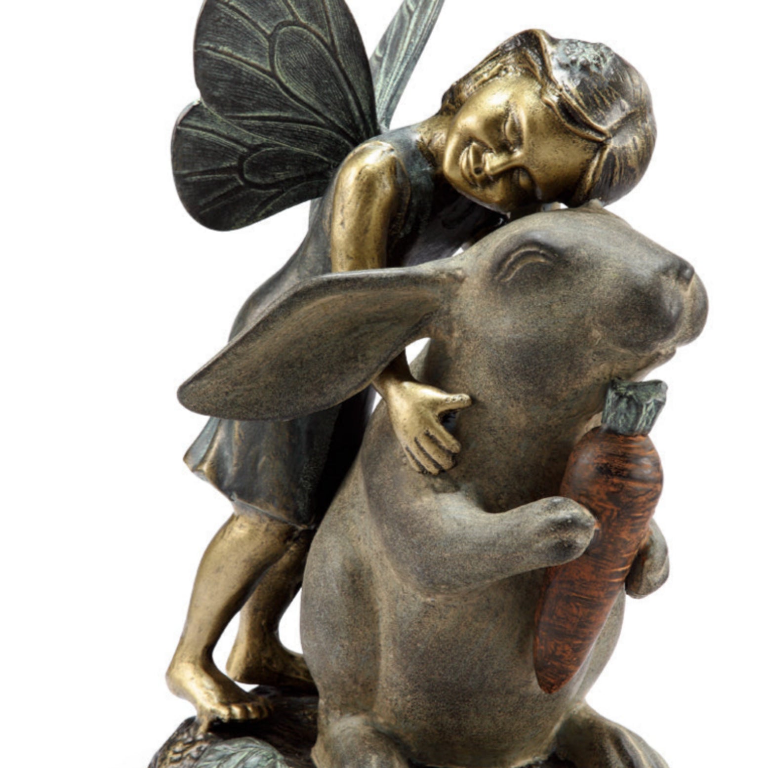 SKU - SPI33879Happiness Garden Sculpture with Fairy and Rabbit for Whimsical Outdoor Decor