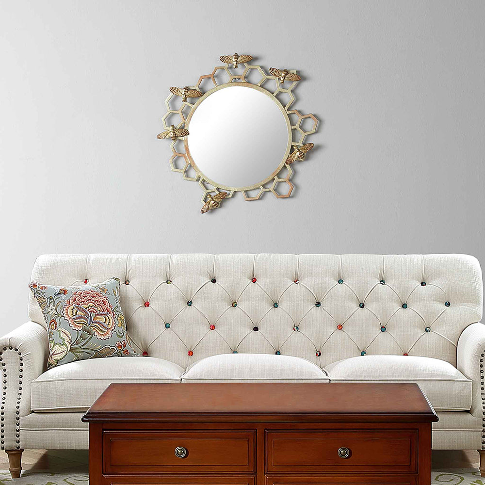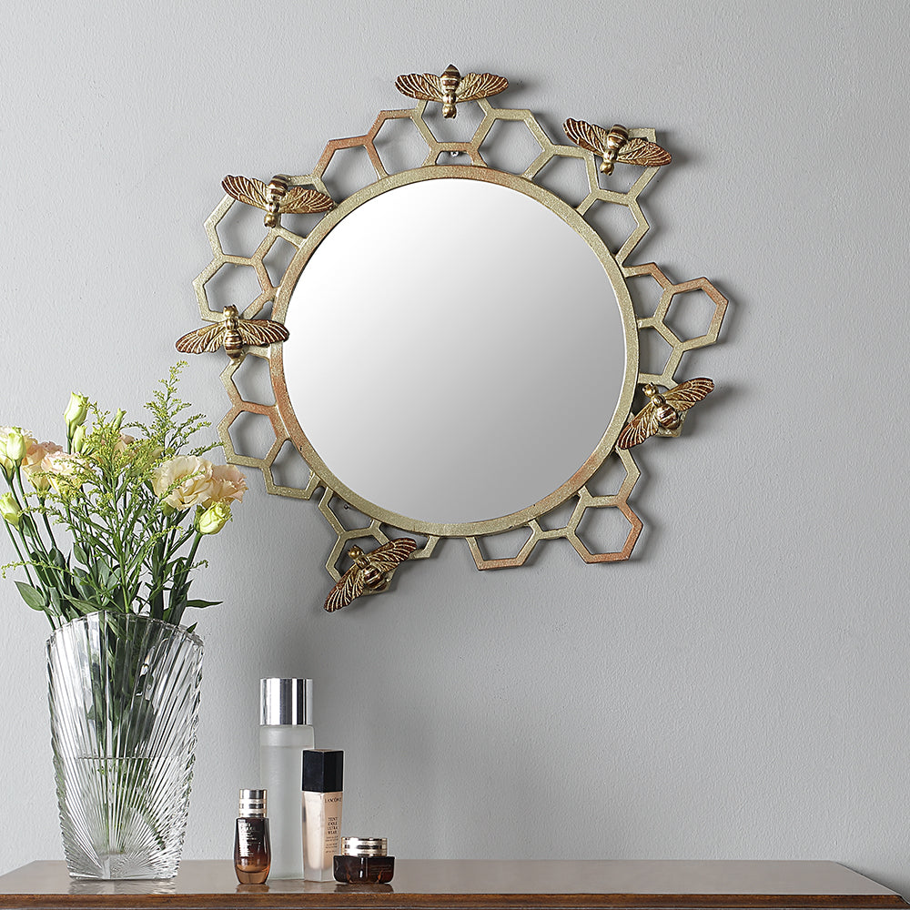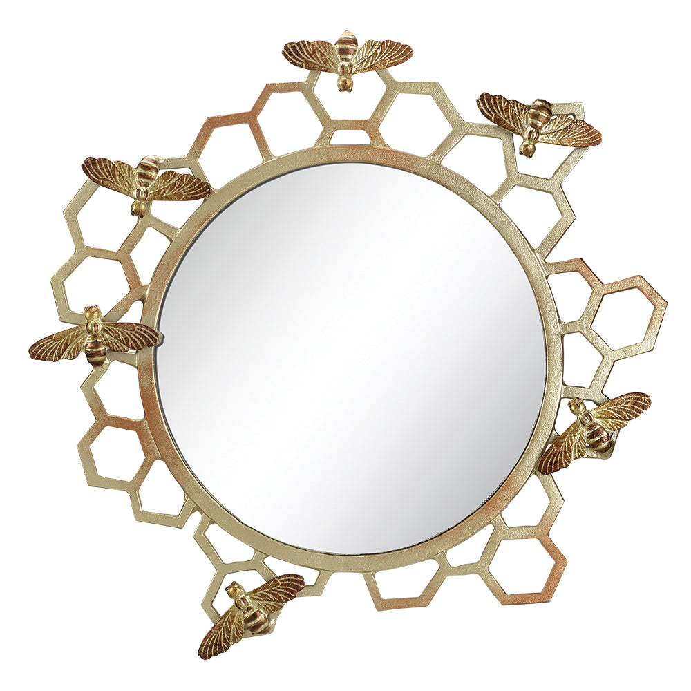 SPI Home Honeycomb and Bee Wall Mirror – Nature-Inspired Gold Accent Décor, Metal Frame, 21.5" x 22" Wall Art