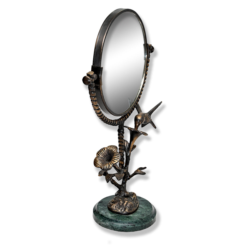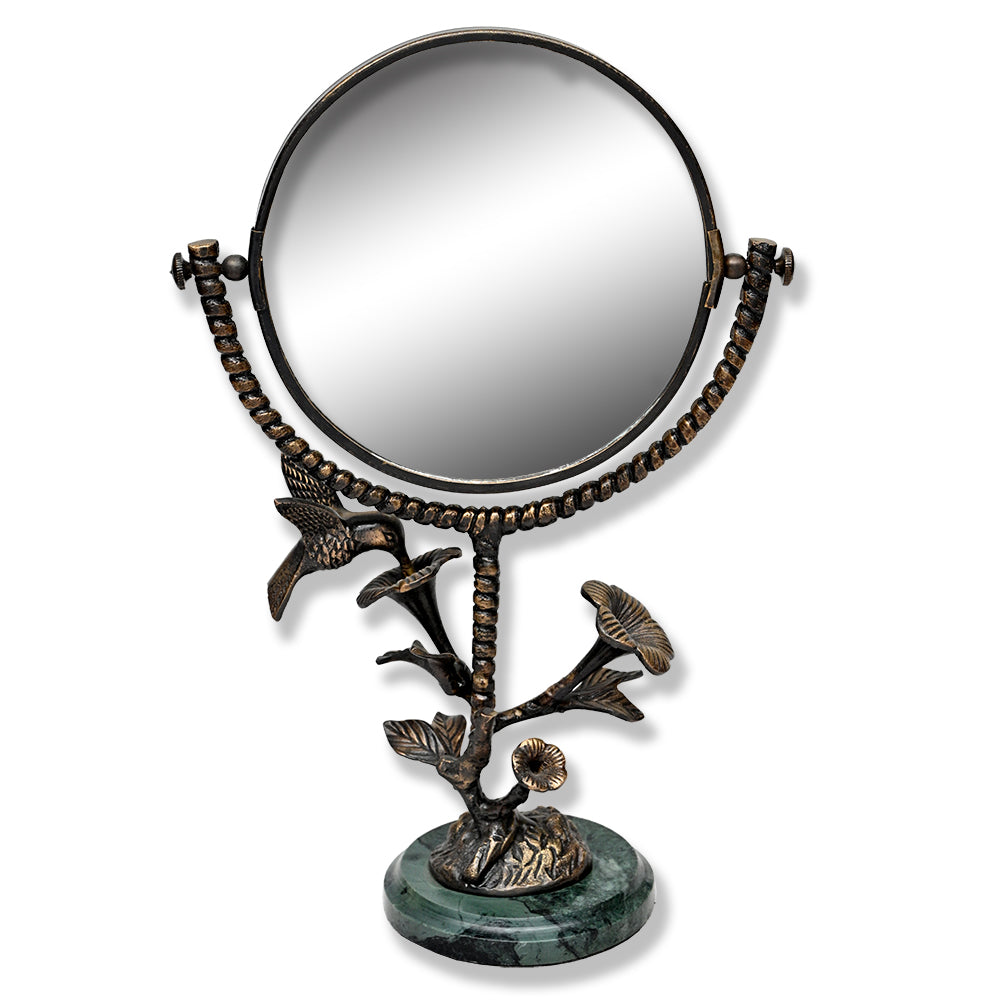 SKU - SPI41038Hummingbird & Flower Mirror – Handcrafted Brass Framed Mirror with Nature Motif