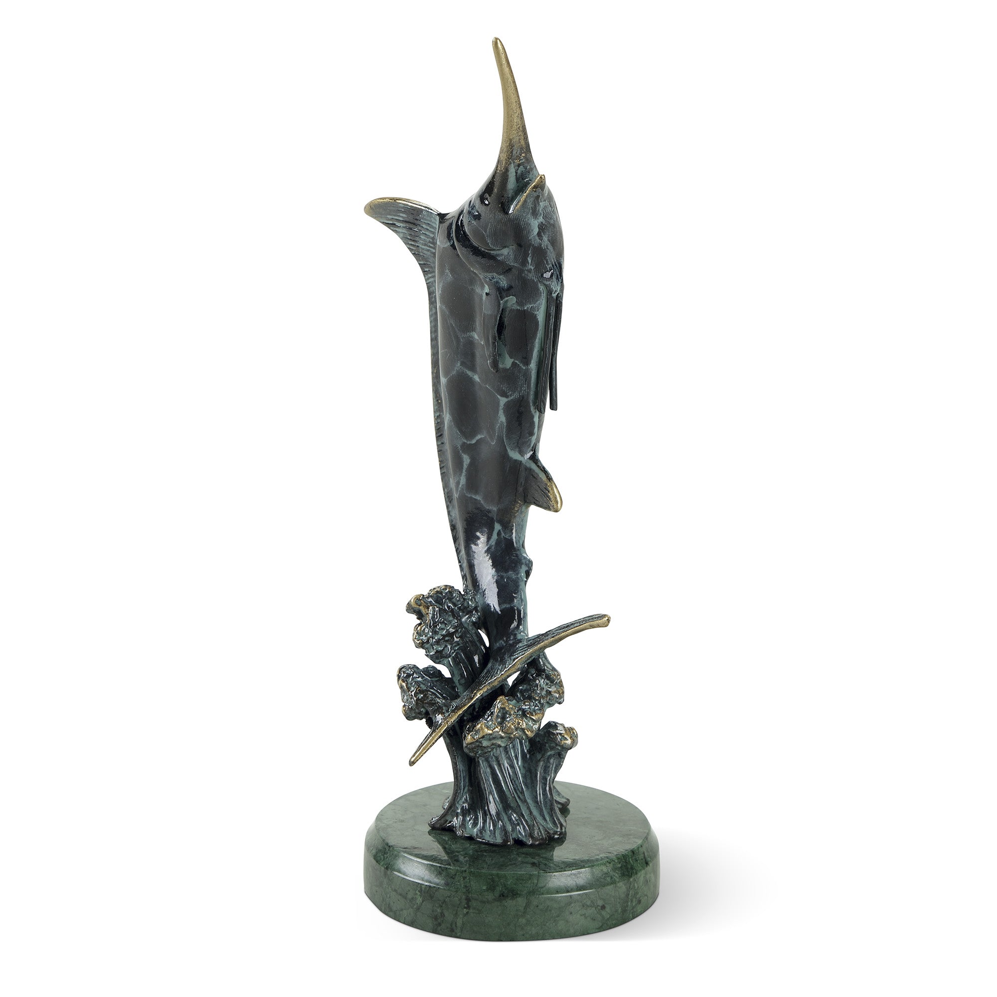 SPI Home Metal Hunting Marlin Figurine – 10.5" Ocean Predator Sculpture, Nautical Decor Accent