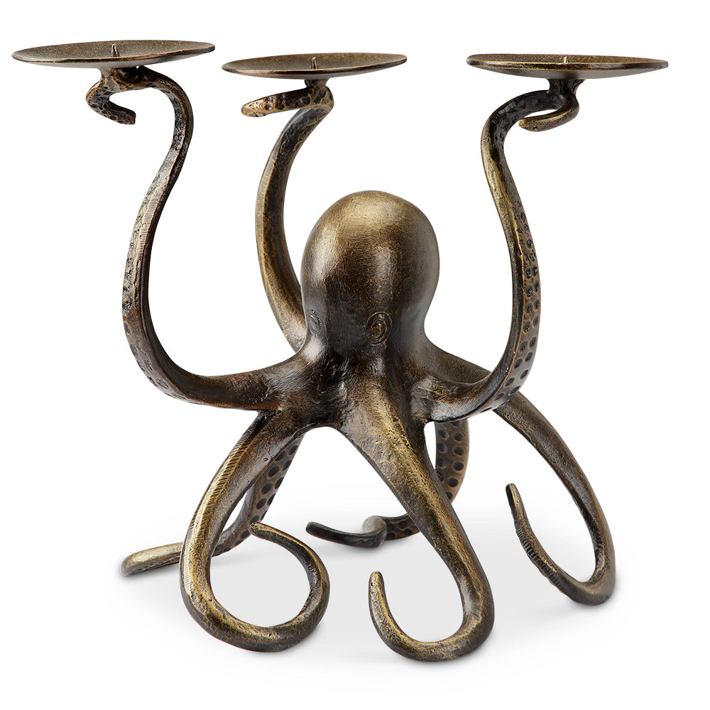 SKU - SPI34065Octopus Pillar Trio Candleholder – Coastal Metal Centerpiece with Tentacle Design for Three Candles