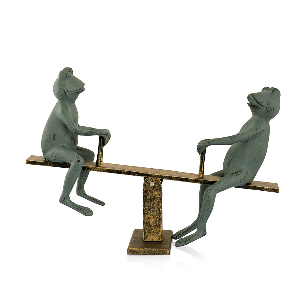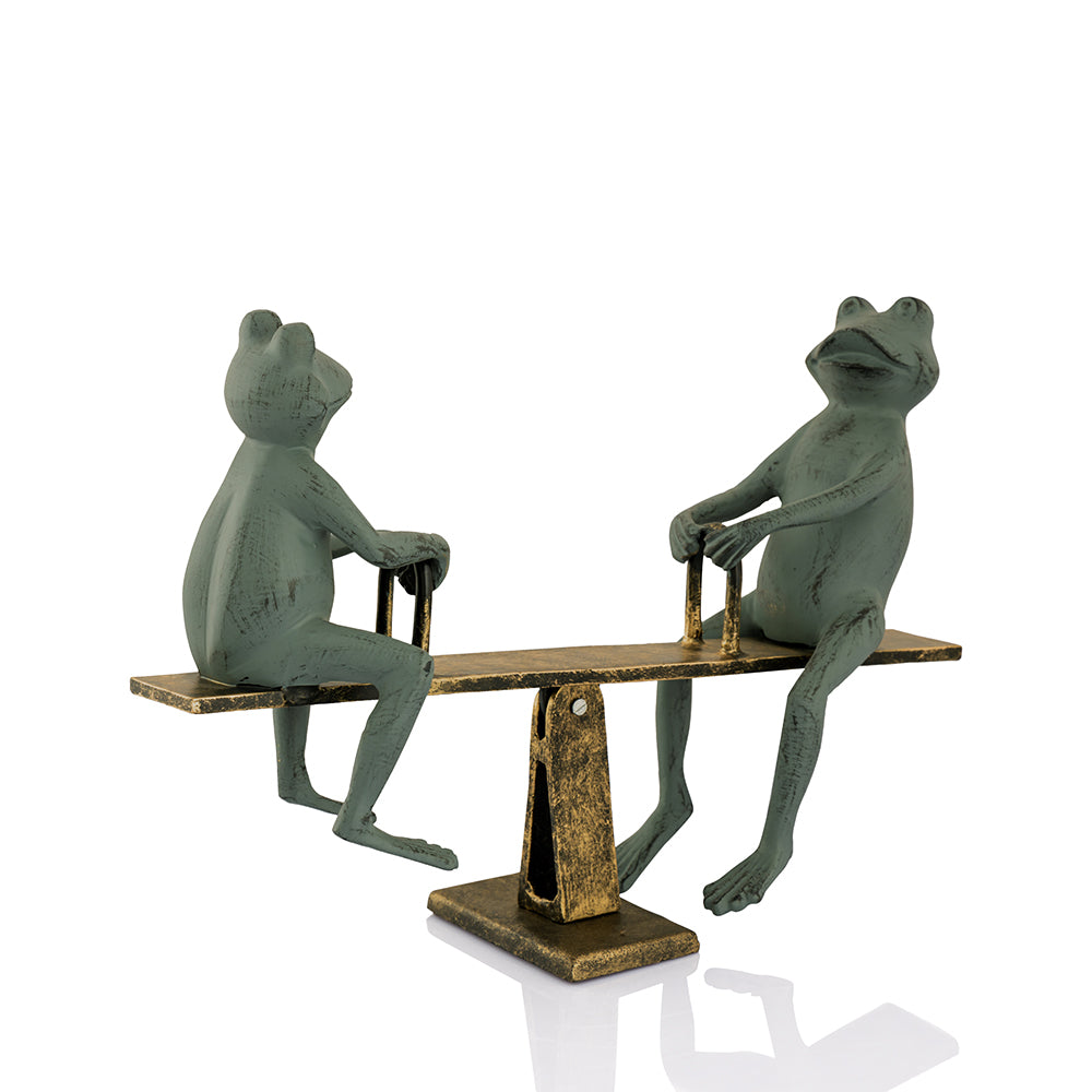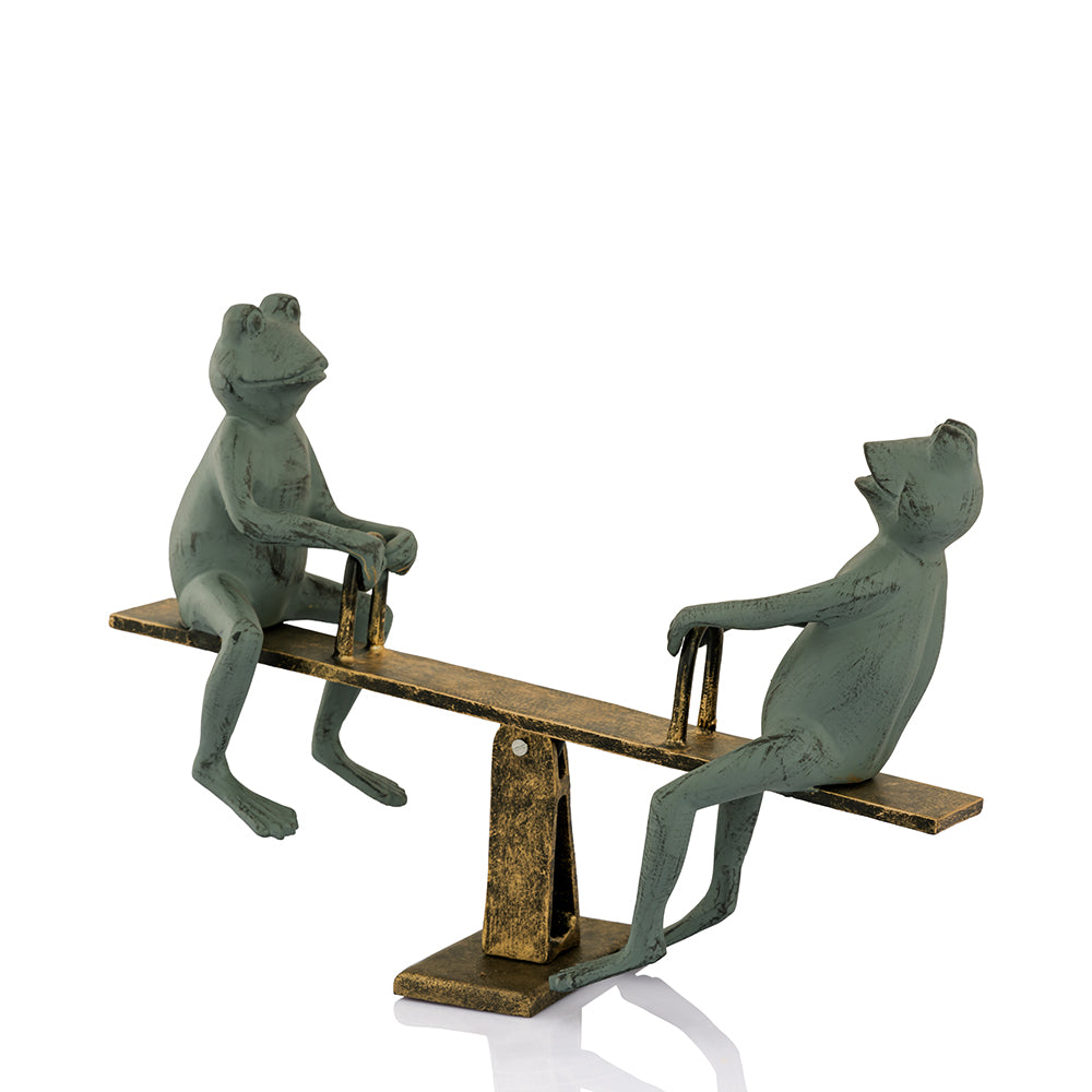 Playground Days Frogs Garden Sculpture – 15-Inch Cast Aluminum Outdoor Statue with Whimsical Frog Duo in Antique Bronze Finish