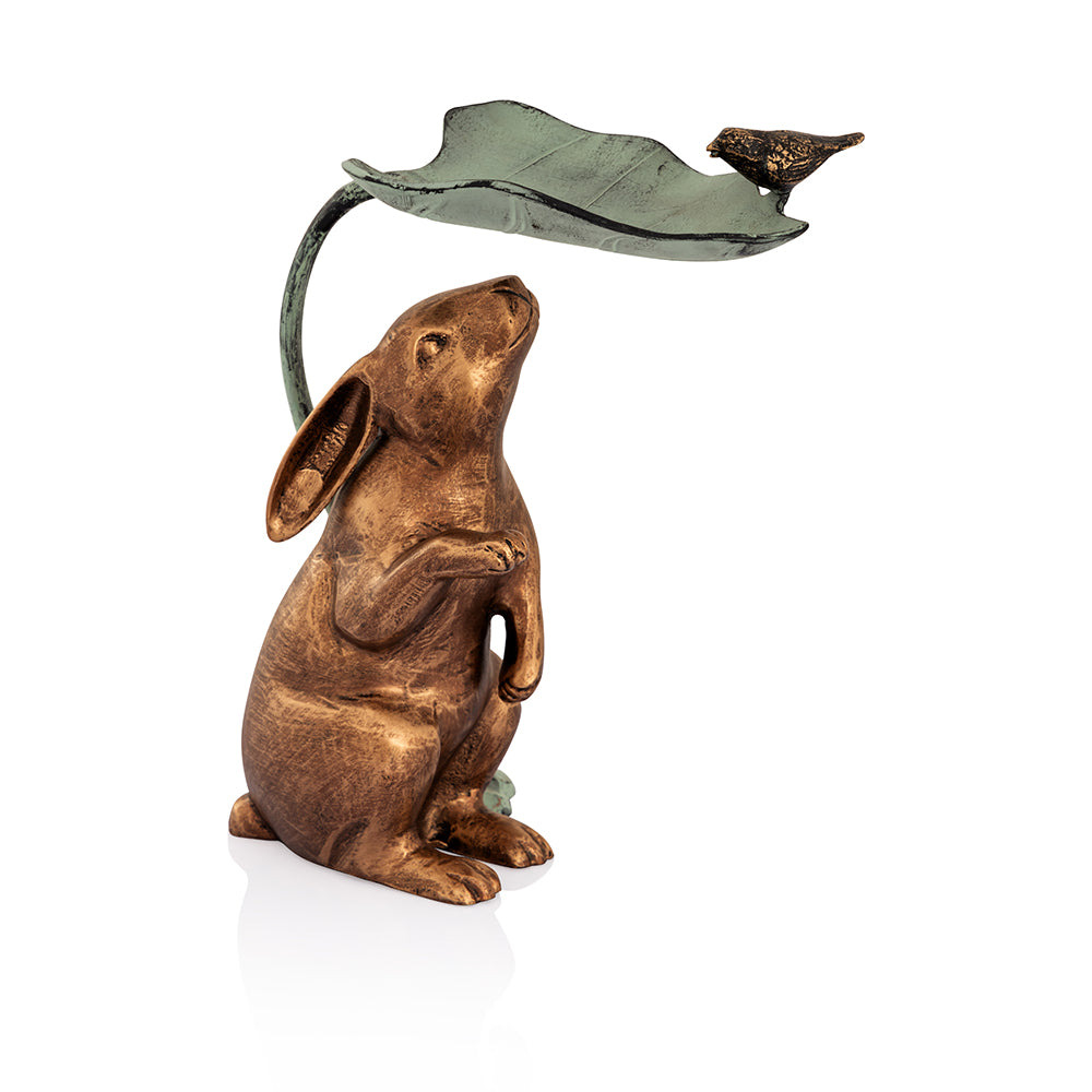 SPI Home Rabbit, Bird and Leaf Birdfeeder – 18-Inch Cast Aluminum Outdoor Feeder with Nature-Inspired Bronze Finish