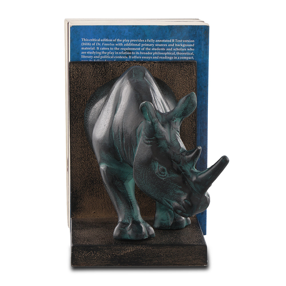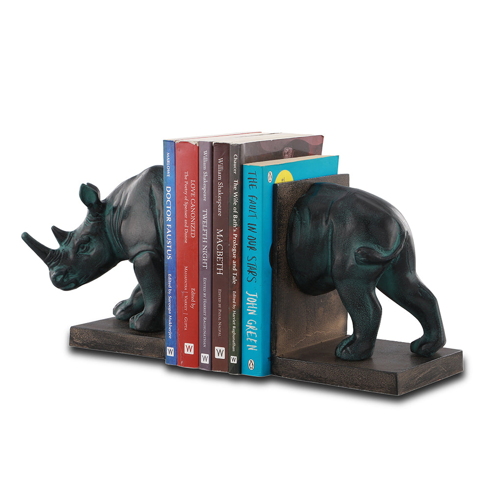 - Frame/Structure: Bookend pair designed as opposing rhino halves for symmetry