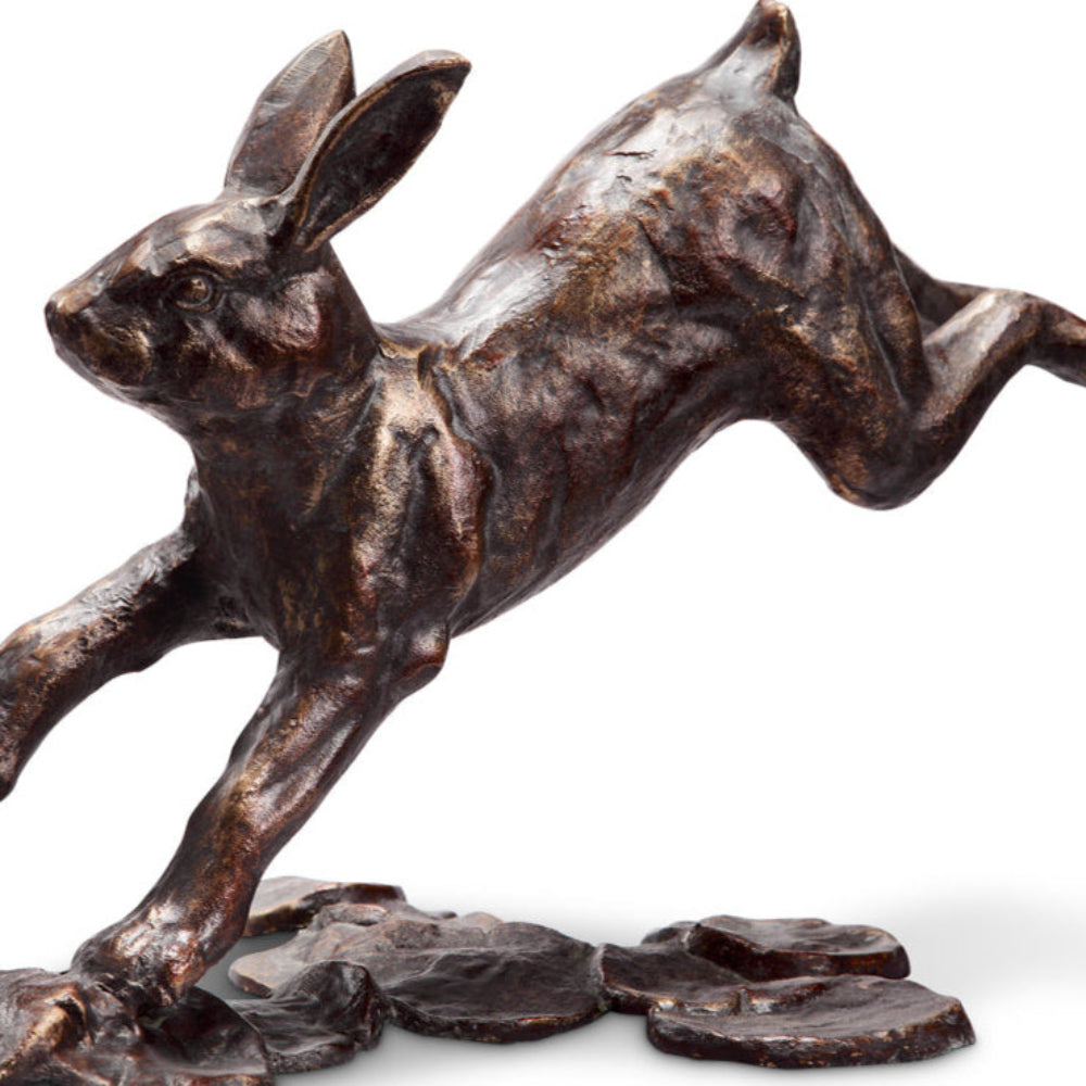 SKU - SPI50874Running Rabbit Garden Sculpture – Aluminum Wildlife Decor for Outdoor or Patio Display, 9.5" H