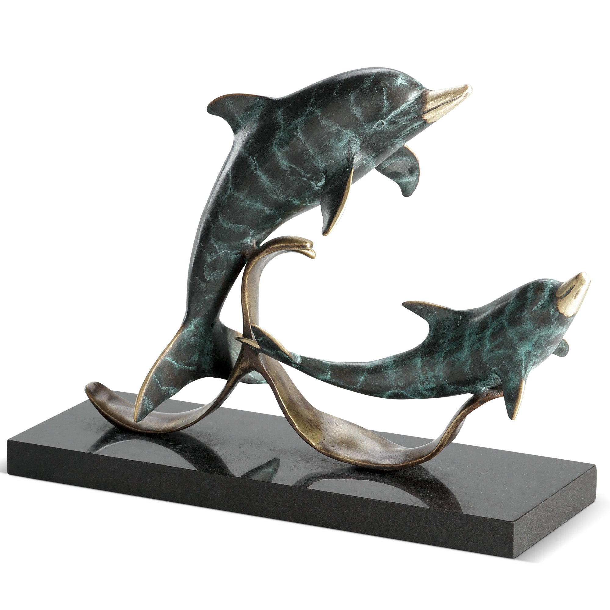 Bring playful energy and coastal charm to your space with the SPI Home Sailor’s Delight – Double Dolphins Sculpture. This beautifully crafted piece features two dolphins leaping together in perfect harmony, a celebration of motion, balance, and marine life. Made from solid brass and finished in a rich golden hue with subtle antique touches, the sculpture rests on a graceful wave-shaped base that adds flow and stability. Measuring 9 inches high, 11 inches wide, and 4.5 inches deep, this sculpture is ideal for decorating mantels, bookshelves, or side tables in nautical, beach-inspired, or ocean-loving homes.