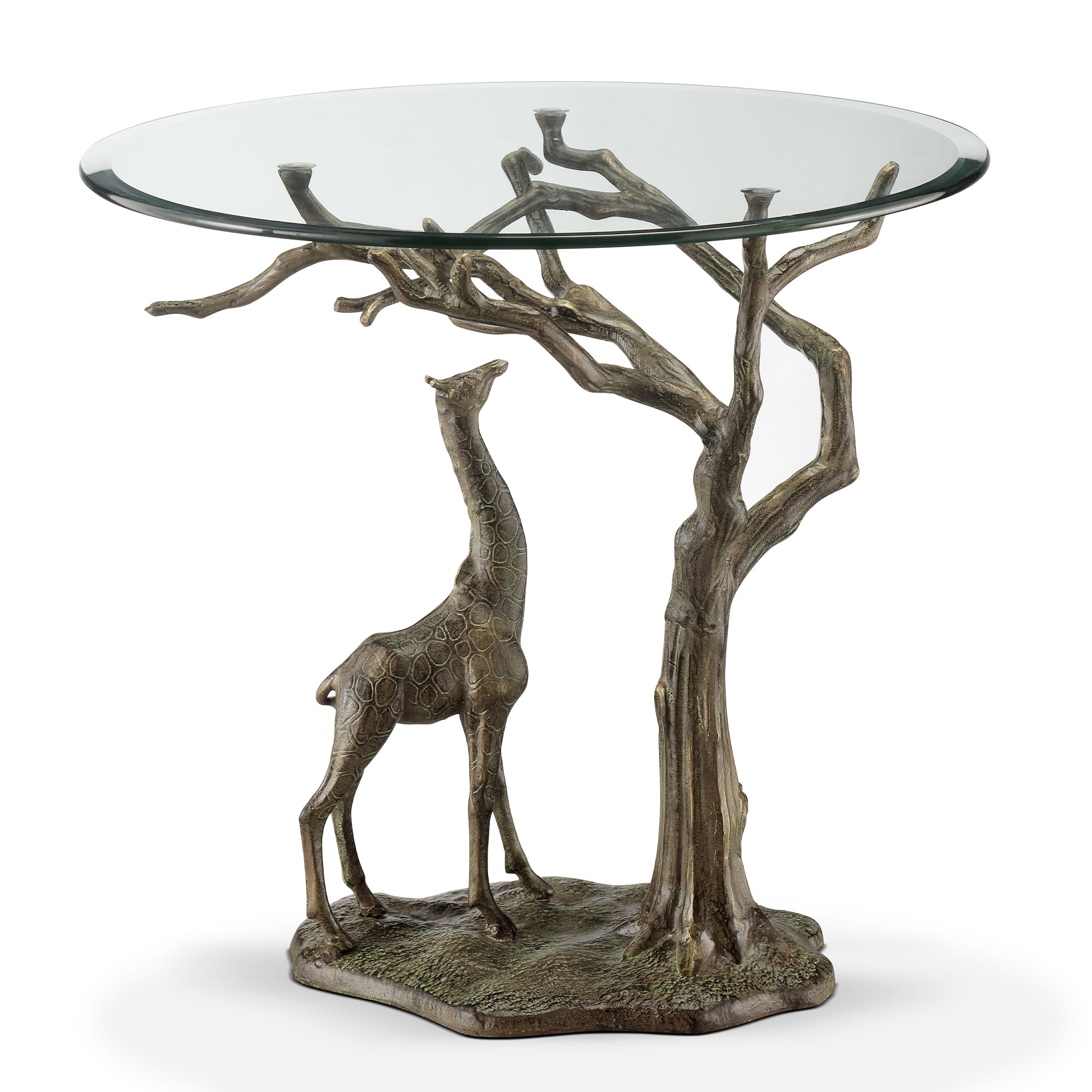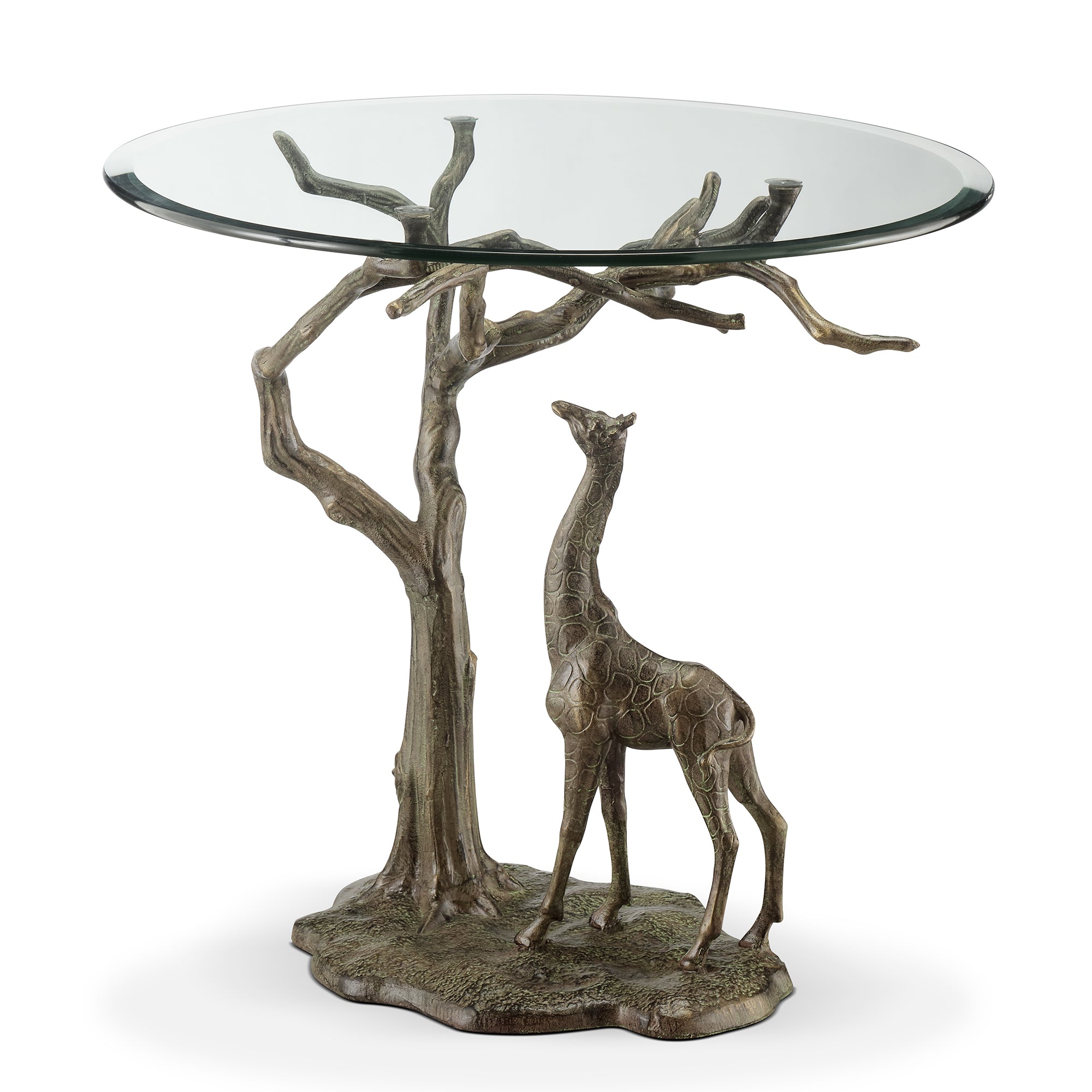 SPI Home Savannah Giraffe End Table – 24"x24" Glass-Top Table with Whimsical Wildlife Sculpture Base