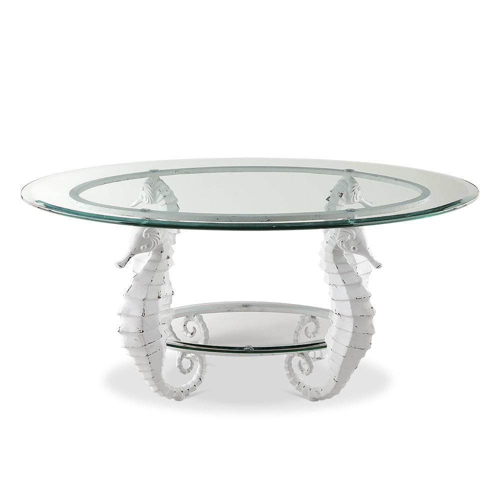 SPI Home Seahorse Coffee Table – 42" Glass-Top Nautical Table with Sculpted Marine Base, Coastal Living Room Statement Furniture