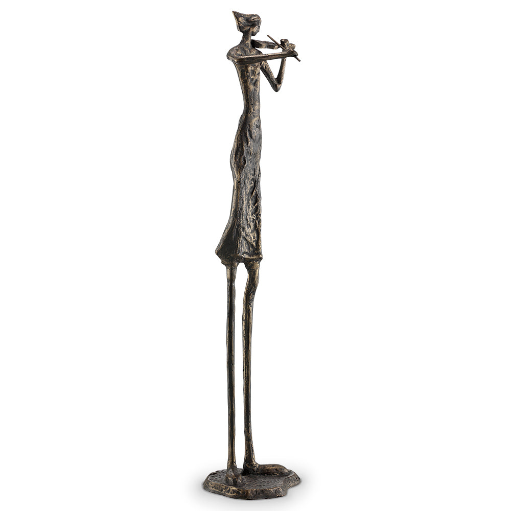 Celebrate the beauty of music and movement with the SPI Home Virtuoso Violinist Figure. Standing gracefully at 39 inches tall, this expressive sculpture is crafted from durable metal and finished in a rich bronze tone. The artistically posed violinist captures a moment of melodic passion, making this 8.5" wide by 7.5" deep piece a powerful visual addition to any room. Whether displayed solo or as part of a trio with other SPI Home musicians, this sculpture adds artistic flair to music rooms, studies, living spaces, or entryways. A stunning tribute to musical expression and modern sculpture.