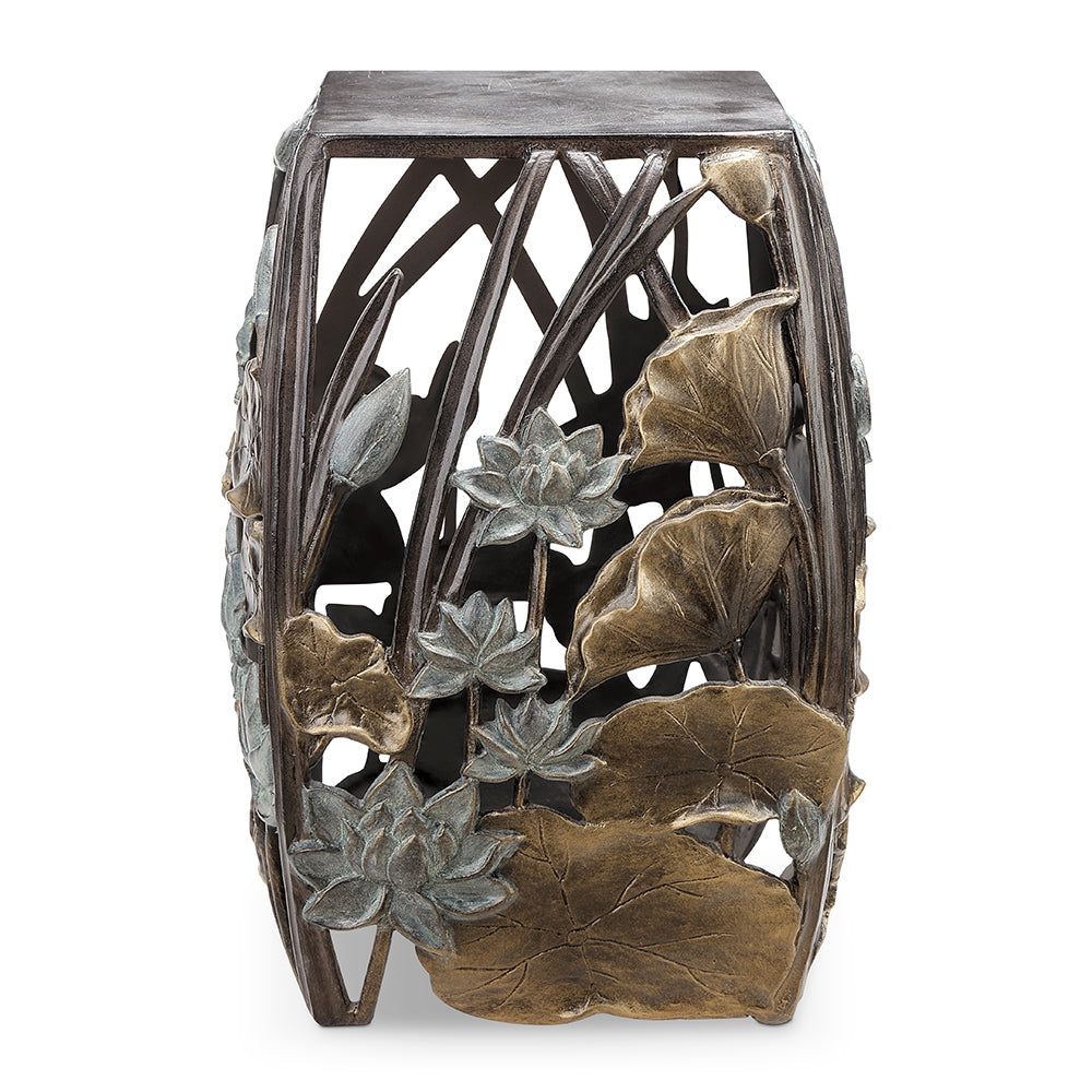 Add natural elegance and versatility to your garden or patio with the SPI Home Water Lilies Garden Stool. Featuring a beautifully sculpted design of water lilies and lily pads, this functional piece serves as both a decorative accent and a practical seat or plant stand. Crafted from durable resin, it offers weather-resistant performance while showcasing botanical detail. Measuring 18.5 inches high, 15.5 inches wide, and 13 inches deep, and weighing 12.75 lbs, it's perfect for gardens, porches, or even indoor spaces looking for a touch of nature-inspired charm.