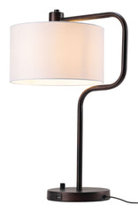 Nocturnal Black Table Lamp with Brass Plated Accents and White Linen Shade
