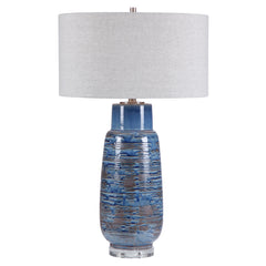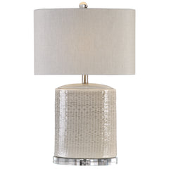 Uttermost 30360 Nocturnal Black Table Lamp with Brass Plated Accents and White Linen Shade