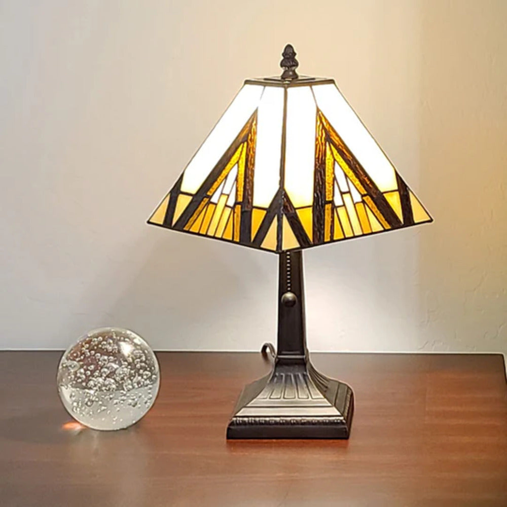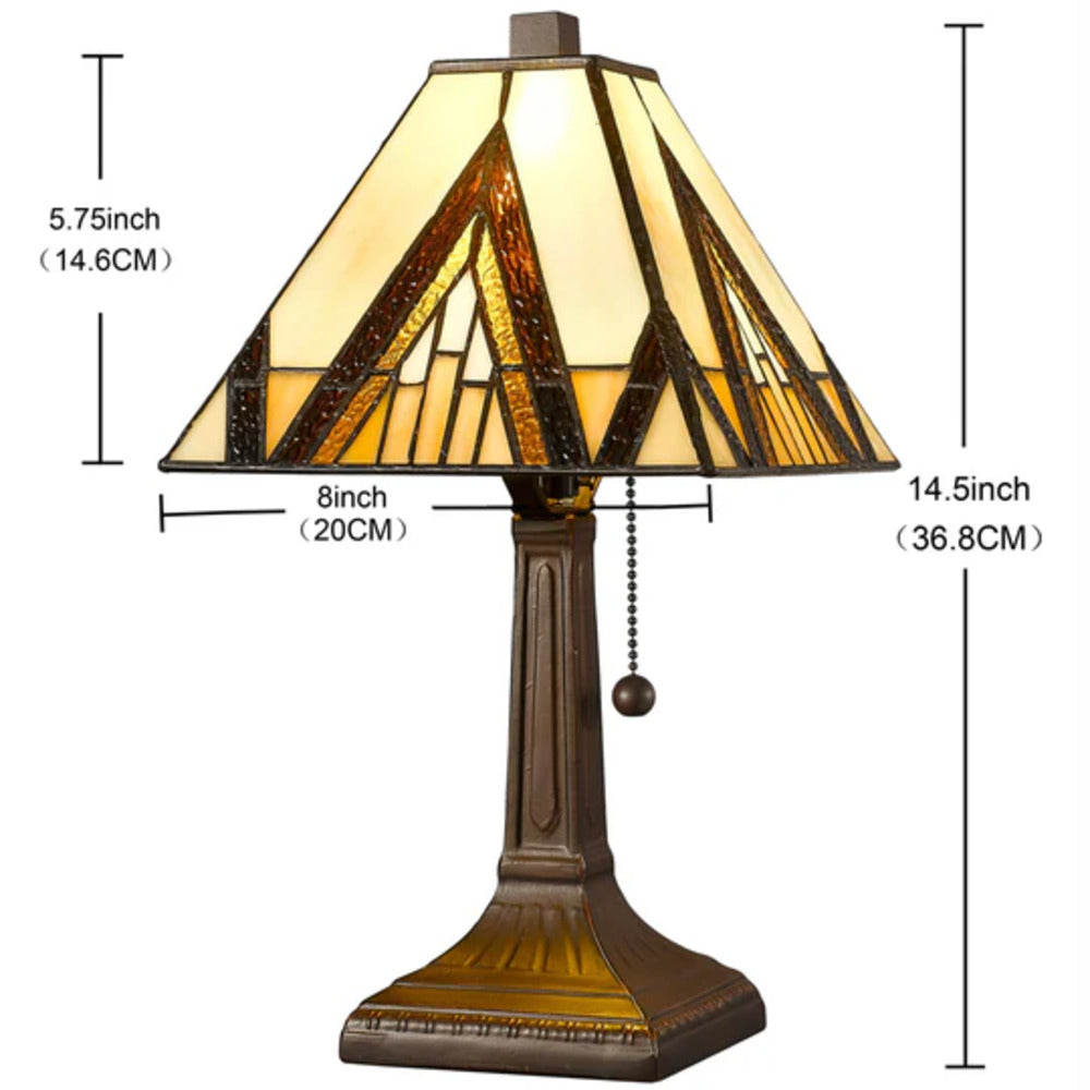SKU - AM364TL08Tiffany Style Table Lamp Banker Mission 14.5" Tall & 8" Diameter