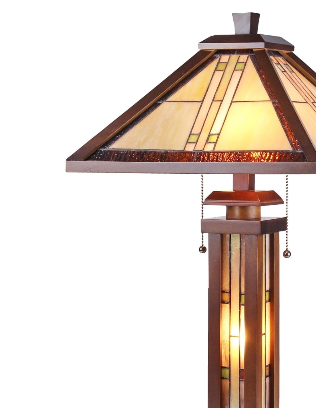 SKU - CHL-CH35827WM15-DT3 Earle Tiffany-style Mission 3 Light Double Lit Wooden Table Lamp 15`` Shade Sold By Uber Bazaar