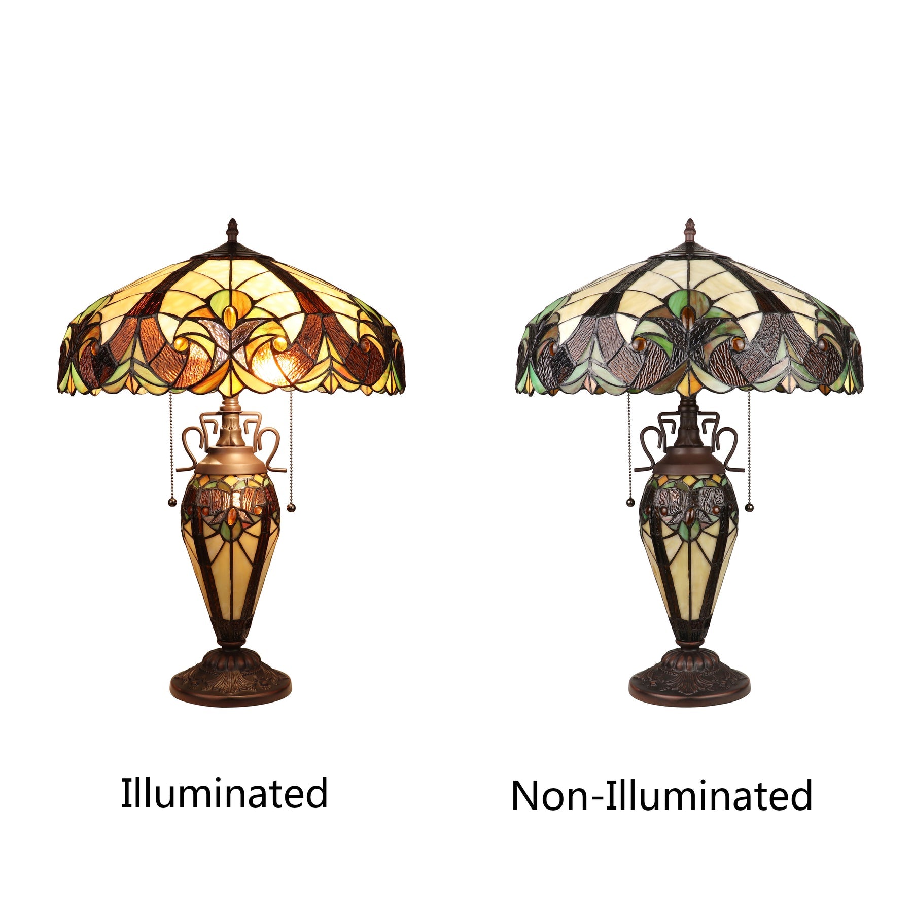 SKU - CHL-CH18780VI18-DT3 Liaison Tiffany-style 3 Light Victorian Double Lit Table Lamp 18`` Shade Sold By Uber Bazaar