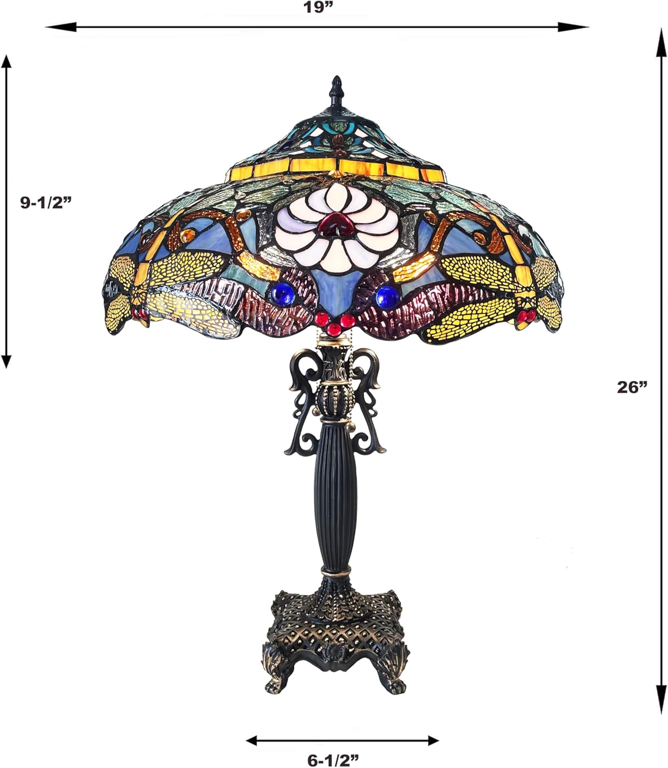 SKU - CHL-CH1B145PD19-TL2 Zygo Tiffany-style 2 Light Dragonfly Table Lamp 19`` Shade Sold By Uber Bazaar