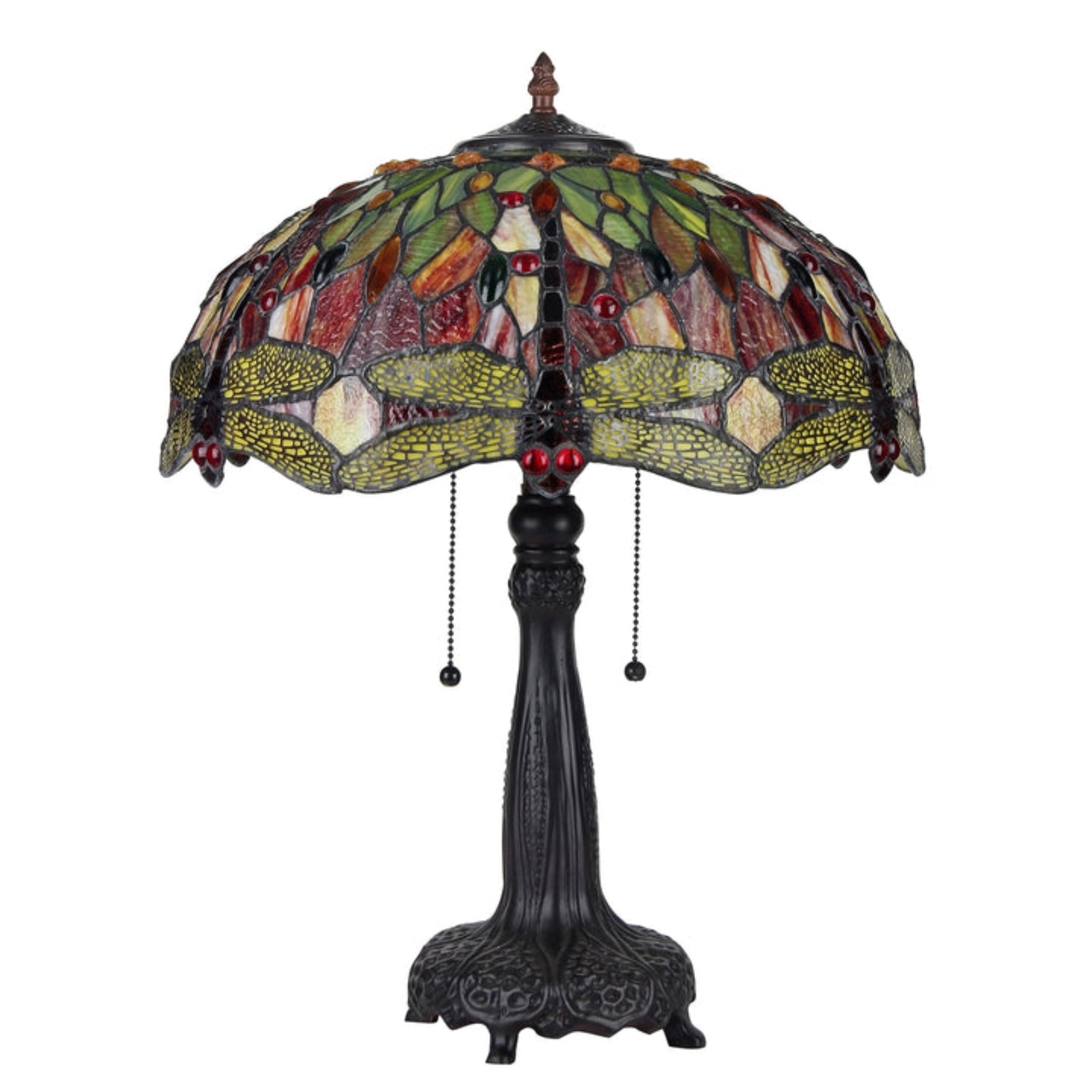 EMPRESS, a Dragonfly style table lamp, will provide the design focal point for your home. Expand the effect by adding one or more of the other lamps in this design style. Expertly handcrafted with top quality materials including real stained glass, sparkling crystals and gem-like cabochons. Handcrafted using the same techniques that were developed by Louis Comfort Tiffany in the early 1900s, this beautiful Tiffany-style piece contains hand-cut pieces of stained glass, each wrapped in fine copper foil.