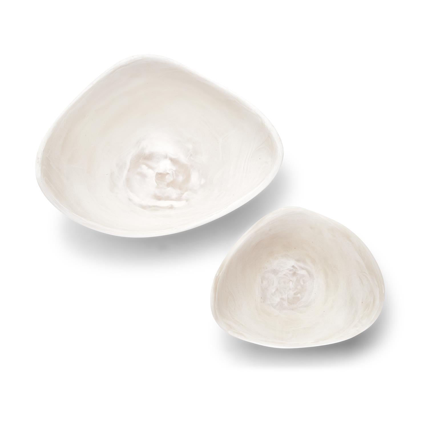 We have re-imagined this wonderful material in an artistic and sculptural way with the introduction of our White Cloud collection of tabletop. From a color perspective, we have combined 2 different resins mixing them by hand to create a free flowing solid and translucent appearance. The result is a illustrious marbleized effect whereby each and every piece is unique.