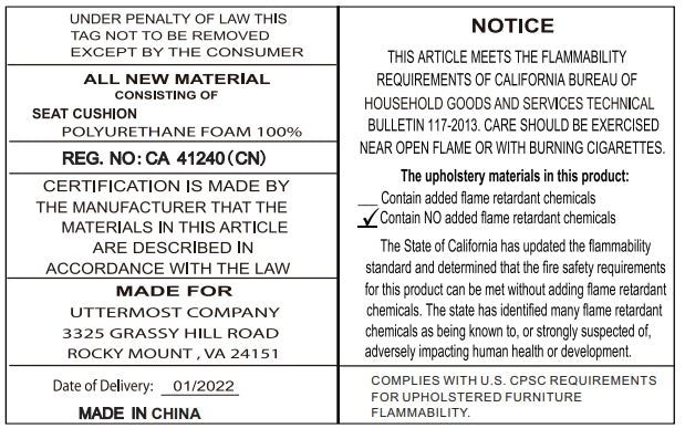 Upholstery crafted from 100% polyester with ASTM D4157 50,000 cycles abrasion rating.