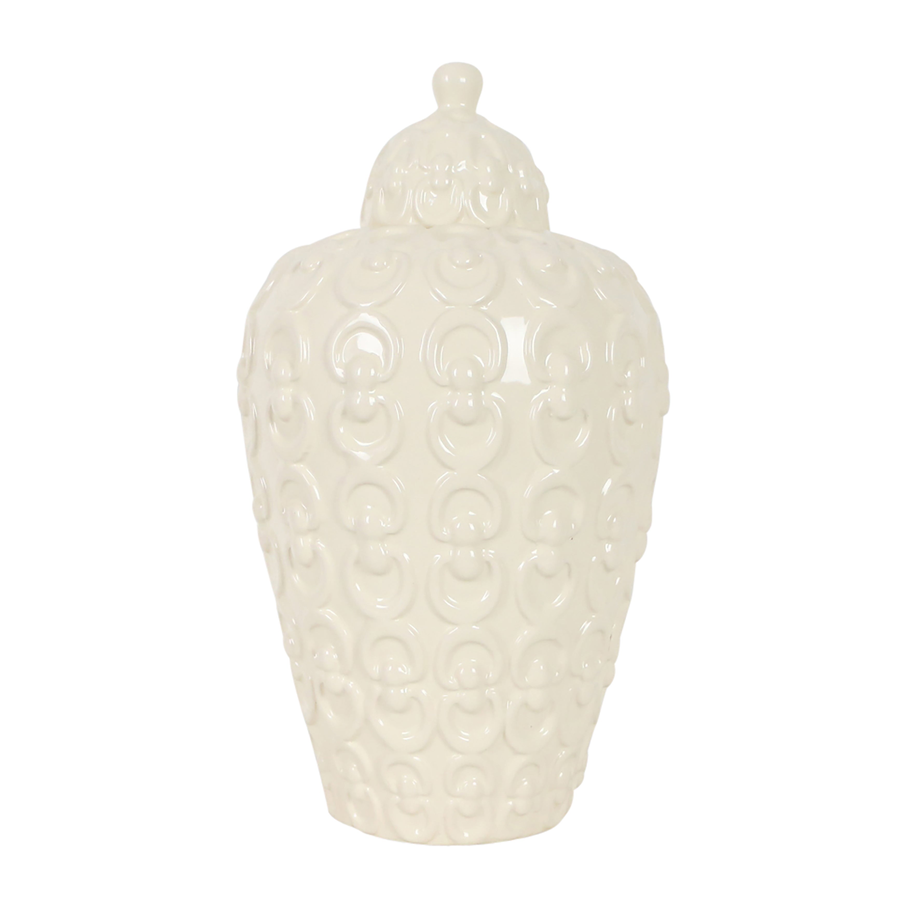 Sagebrook Home 18628-01 Ceramic, 12" Chain Texture Jar, Cotton