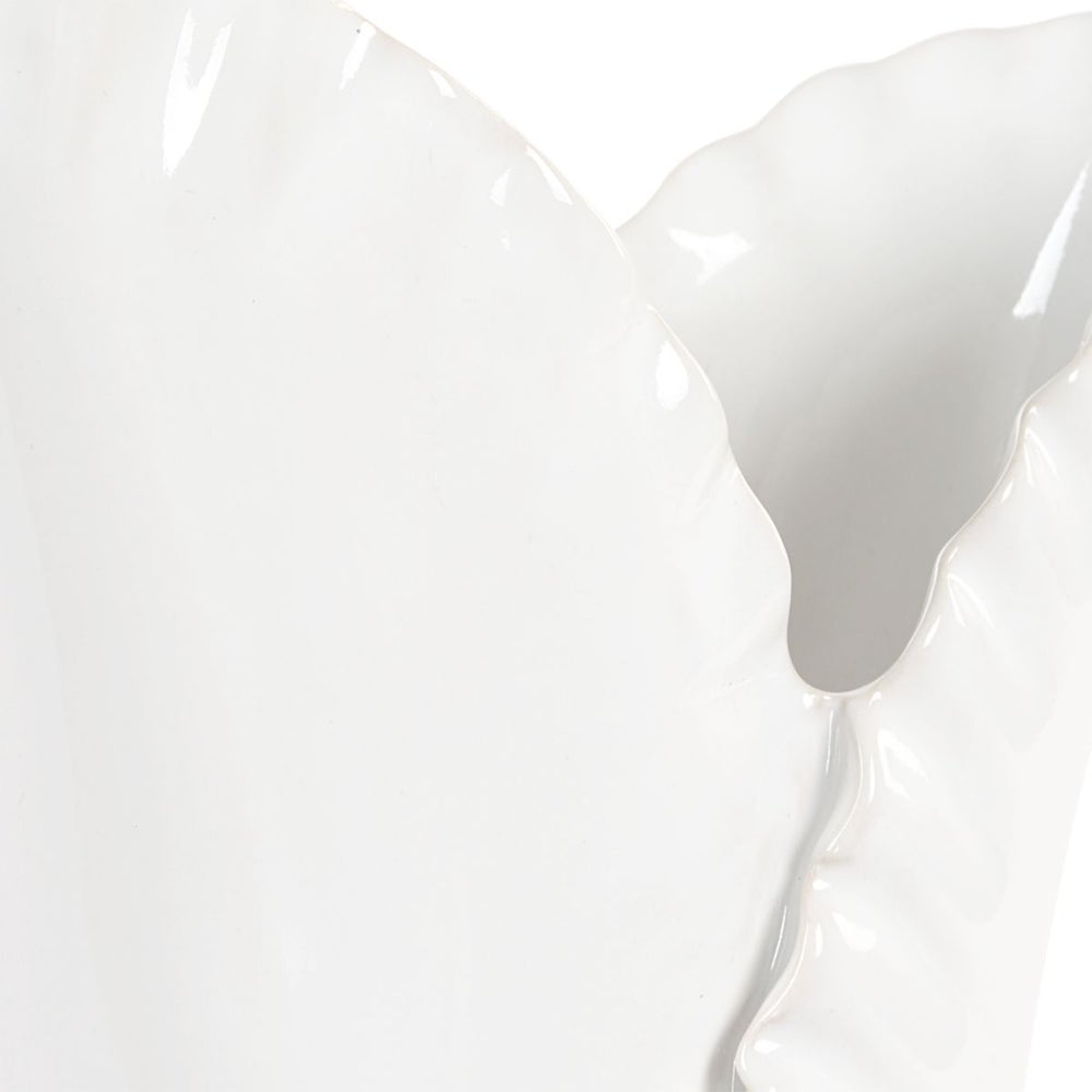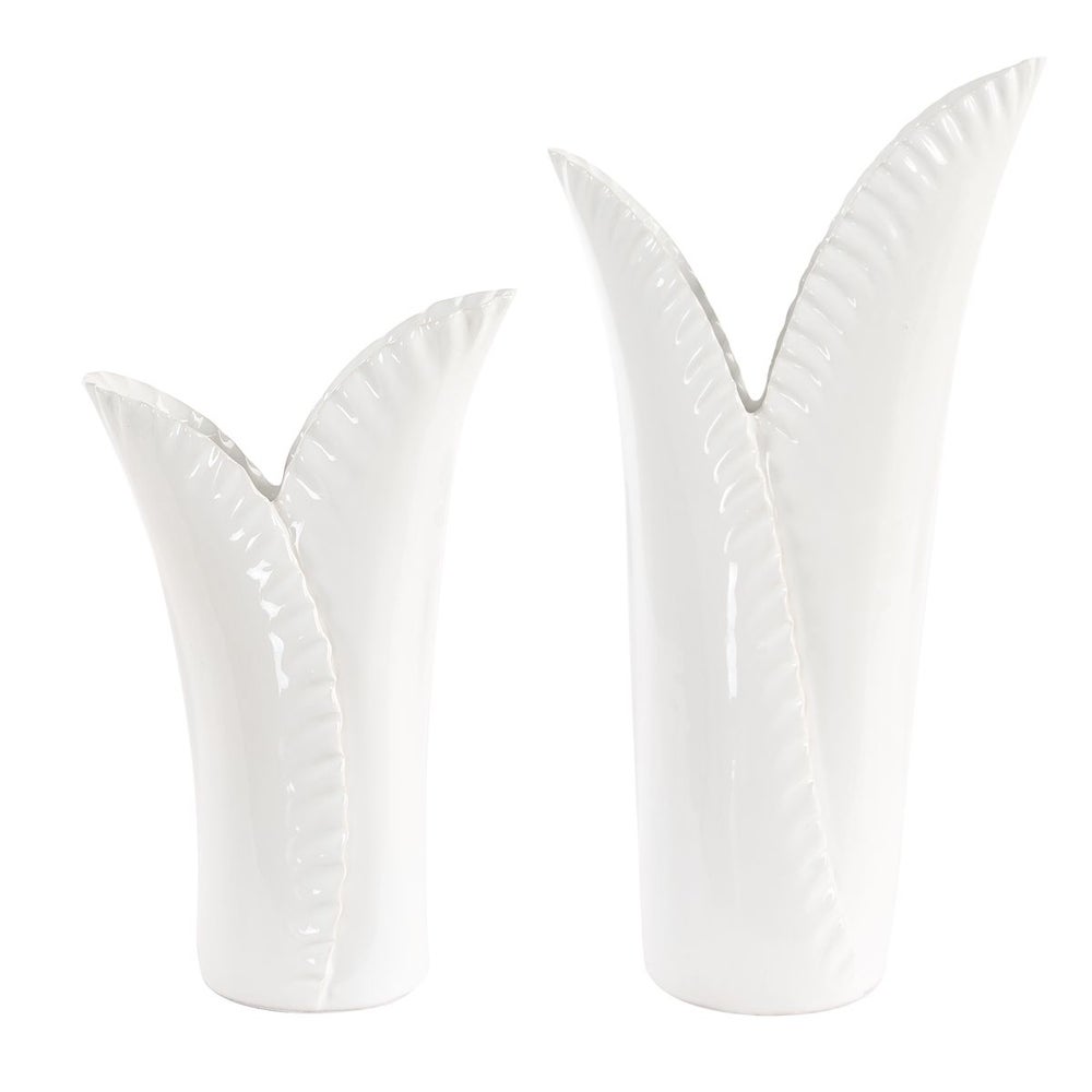 Set of 2 white ceramic vases with leaf-inspired contours.