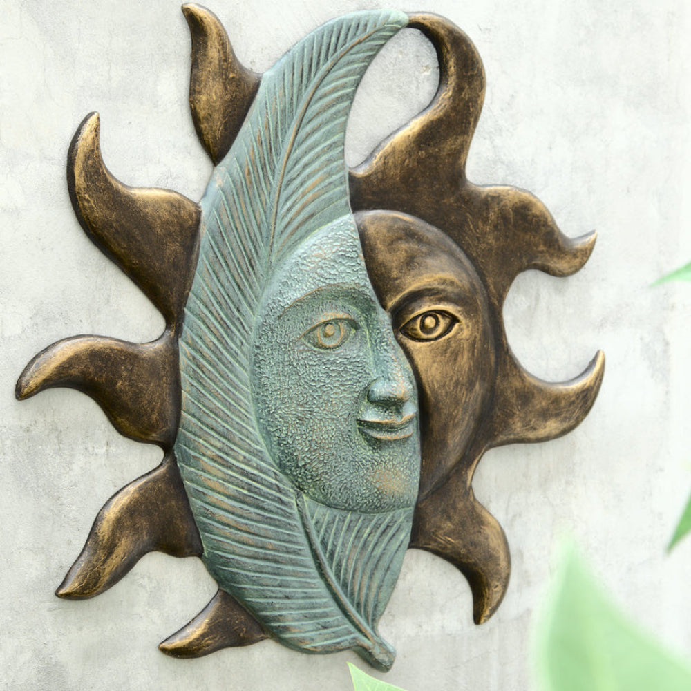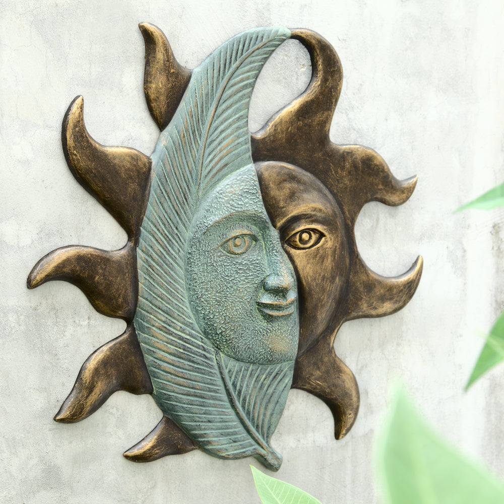 SKU - SPI33759Leaf & Sunface Wall Hanging – 26"H Metal Decorative Wall Art