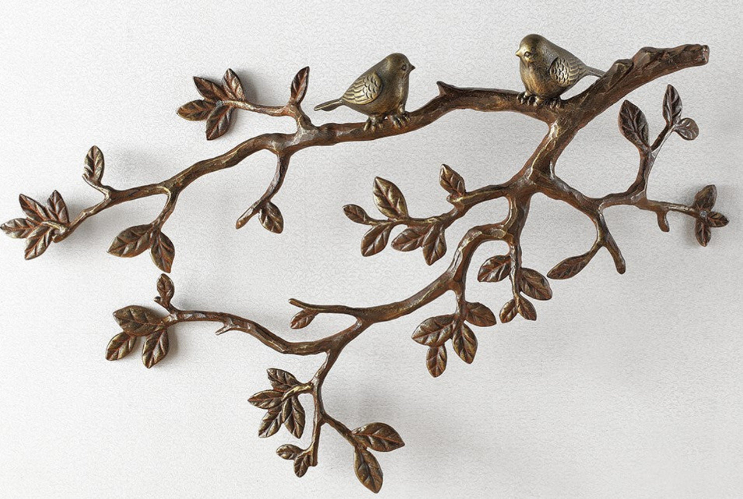 SPI Home Little Lovebirds on Branch Wall Plaque – Nature-Inspired Metal Wall Art, 27" Wide Rustic Decorative Accent
